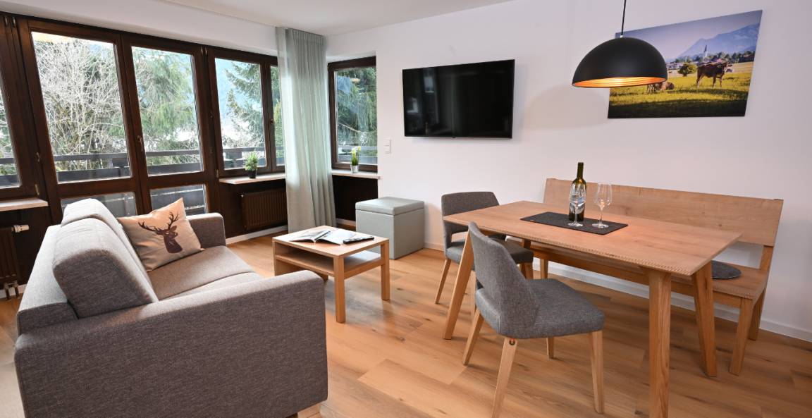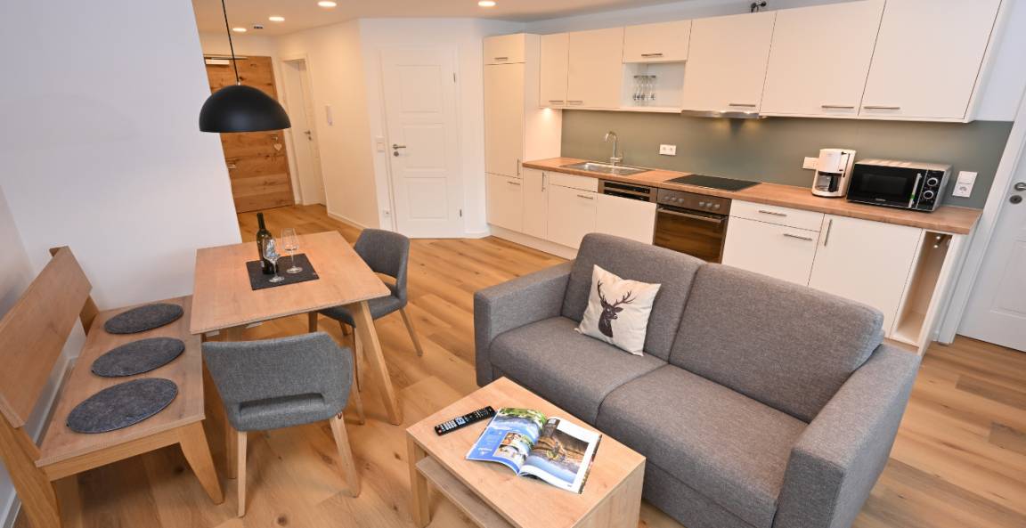 Die in den Alpenhof Apartments liegende geräumige 2-Raum-Ferienwohnung für 2 bis 4 Personen hat eine Fläche von ca. 64 bis 98 m². Die Unterkunft verfügt über einen Balkon zur Süd- oder Westseite, ideal für entspannte Stunden im Freien. Ein separates Schlafzimmer sorgt für Privatsphäre, während der Wohnraum mit Esstisch und gemütlicher Sitzgelegenheit zum Verweilen einlädt. Die separate Kitchenette ermöglicht die Zubereitung eigener Mahlzeiten. Die Ferienwohnung ist zudem ausgestattet mit Flachbild-TV , Zimmersafe und kostenfreiem WLAN Internetzugang. Das Badezimmer ist mit Dusche und WC ausgestattet und bietet zusätzlichen Komfort für einen angenehmen Aufenthalt.