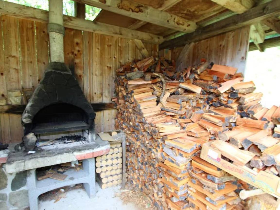 Layout : Parterre: Eingang, Wohnzimmer mit Holzherd, Kaffeemaschine(Filter), Kühlschrank , Badezimmer mit Dusche, Waschbecken, Toilette