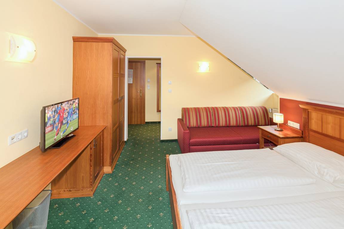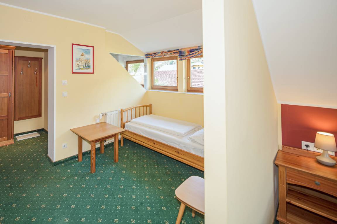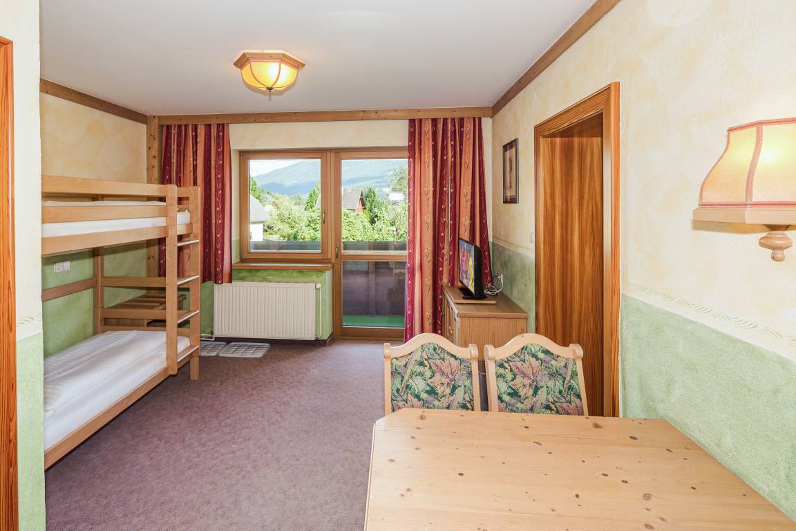 1. Etage: Doppelzimmer. Appartement für 4 Personen: Doppelzimmer, Durchgang zum weiteren Doppelzimmer, Bad (Du, Wb), separates WC. Zwei 3-Bettzimmer mit Doppelbett, Einzelbett, Bad (Du, Wb, WC). 3-Bettzimmer mit Doppelbett, Schlafcouch (Bad, Du, Wb, WC). Appartement für 3 Personen: Wohnraum mit Einzelbett, Durchgang zum Doppelzimmer, Bad (Du, Wb, WC). Appartement für 4 Personen: Wohnraum mit Ausziehcouch (2 Pers.), Durchgang zum Doppelzimmer, Bad (Du, Wb, WC). Appartement für 4 Personen: Wohnraum mit Etagenbett, Durchgang zum Doppelzimmer, Bad (Du, Wb, WC). Appartement für 4 Personen: Wohnraum mit Ausziehcouch (1 Pers.), Durchgang zum 3-Bettzimmer mit Doppelbett, Ausziehcouch (1 Pers.), Bad (Du, Wb, WC).