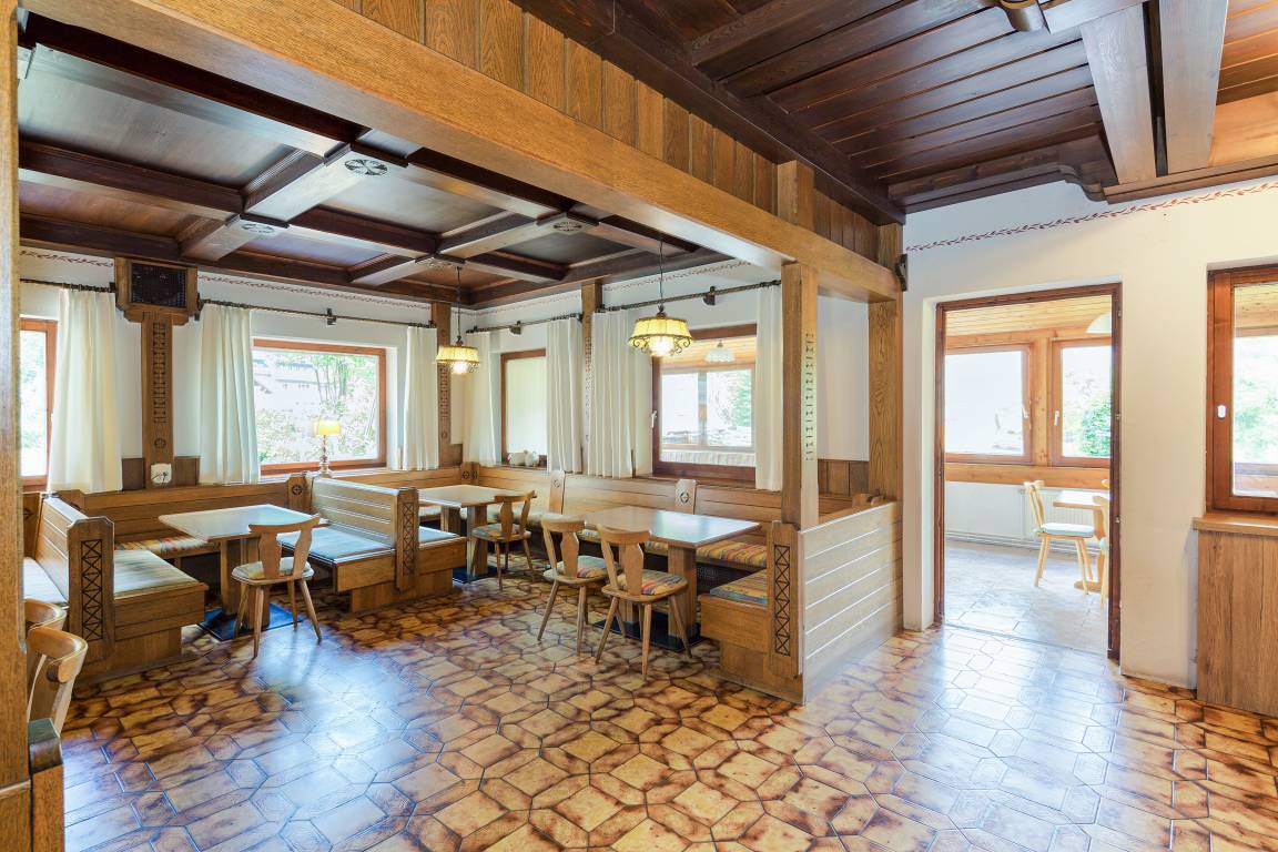 Haus: Ehemaliges Hotel, jetzt ein idealtypisches Ferienhaus für Gruppen mit 900 qm Wohnfläche. Großzügiger Wellnessbereich (Schwimmbad, 2 Saunen, Infrarotkabine, Tepidarium, Ruheraum). Großer Tagesraum mit Esstischen, Wintergarten. Hotelküche. Weiterer Aufenthaltsraum mit Kabel-TV. Spielzimmer. 16 Schlafzimmer mit eigenem Bad/ WC, Kabel-TV, Balkon. Kostenloser Internetzugang über W-Lan. Zentralheizung. Nachhaltiges und ökologisches Wohnkonzept durch eigene Photovoltaikanlage und Hackschnitzelheizung. Großzügiger Garten mit Gasgrill, Tischtennisplatte. Skiraum mit beheizbarem Skischuhtrockner. Carport mit 6 überdachten PKW-Stellplätzen. 12 weitere PKW-Stellplätze am Haus. Busparkplatz.