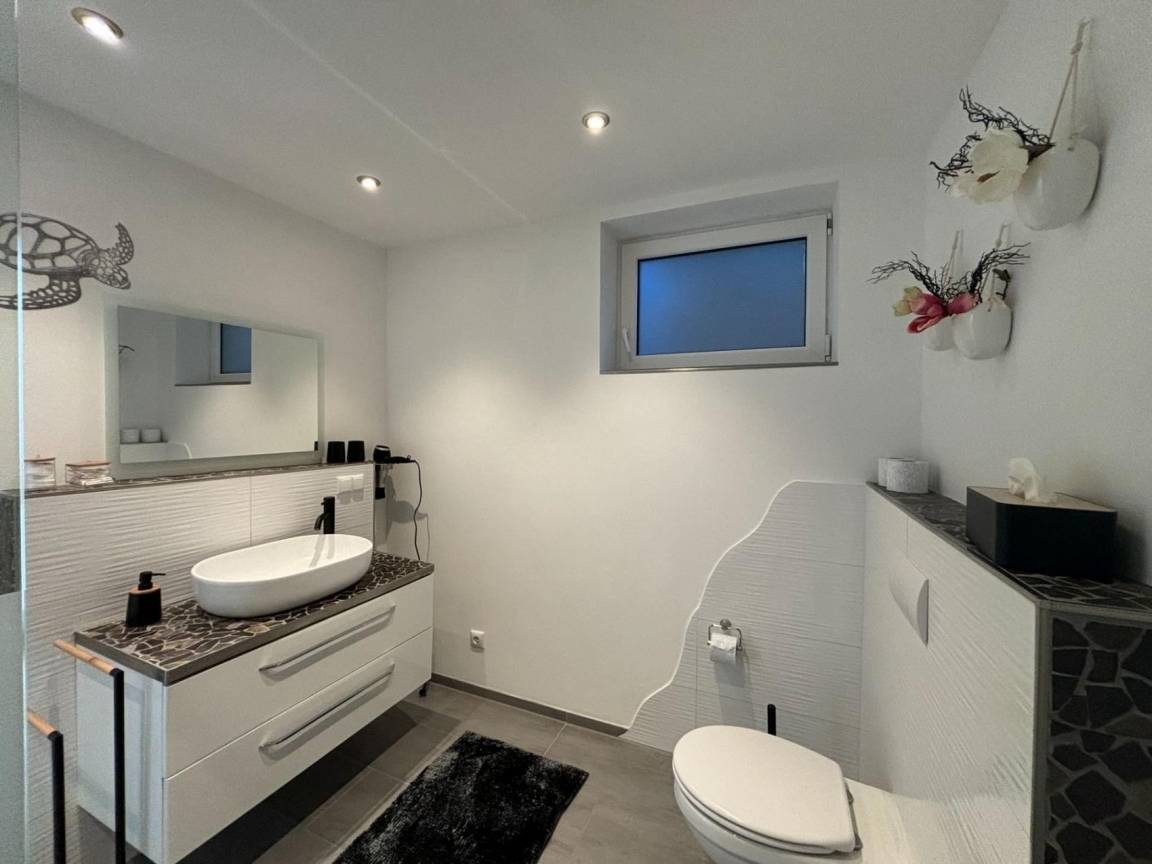 Exquisite Ferienwohnung mit modernster Ausstattung auf 4 Sterne Niveau, für bis zu vier Gäste in einer idyllischen Lage im Herzen des Brohltals, unmittelbar am Fuße der majestätischen Burg Olbrück in Oberzissen. Diese außergewöhnliche Unterkunft wurde im Jahr 2024 einer umfassenden Renovierung unterzogen und erstrahlt nun in neuem Glanz. In dieser geschmackvoll eingerichteten Wohnung erwartet Sie eine äußerst angenehme und entspannte Atmosphäre, begleitet von einem beruhigenden Ausblick auf den malerischen Gartenteich, der von Koi-Karpfen bevölkert wird. Darüber hinaus bieten wir Ihnen kostenfrei die Möglichkeit, einen Weber Kugelgrill zu nutzen sowie abschließbare Garagenplätze für Ihre Motorräder und Fahrräder in Anspruch zu nehmen. Selbstverständlich stellen wir Ihnen auch einen eigenen Stellplatz für Ihr Fahrzeug zur Verfügung. Erleben Sie einen unvergesslichen Aufenthalt in unserer hochwertigen Ferienwohnung.