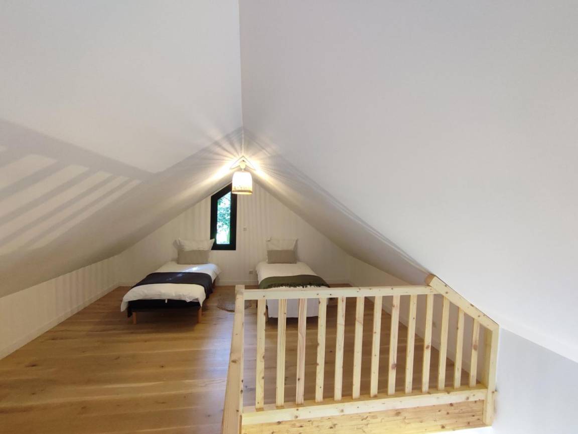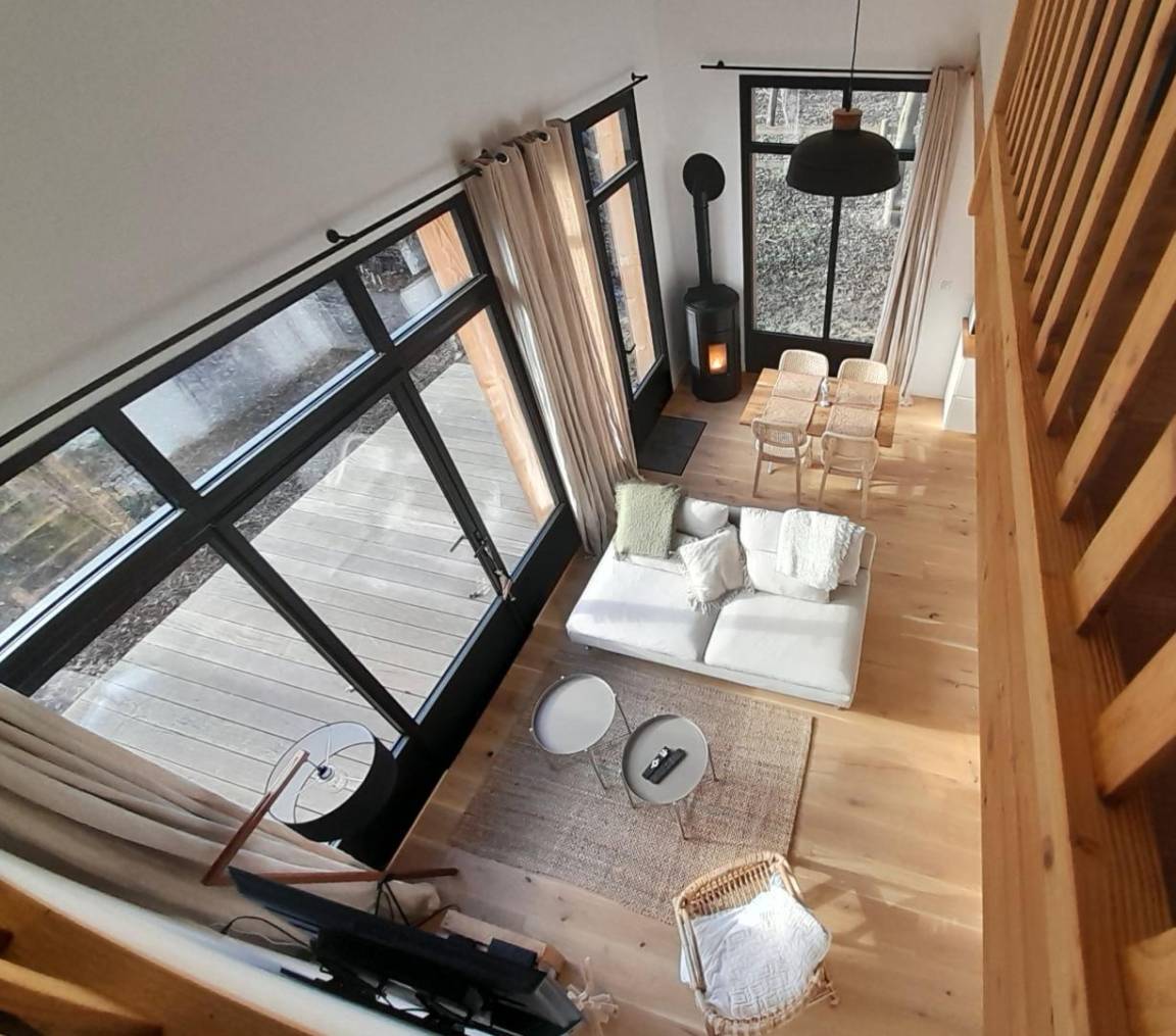 „L'accueil de Floriane est très chaleureux et convivial, l'endroit un est un bijou, probablement encore plus quand les arbres sont feuillus (j'y étais pour le nouvel an) /. Le feu fonctionne très bien et chauffe suffisamment l'habitacle (malgré mes températures extérieures proches de zéro). Tout est extrêmement bien équipé, et ce avec goût. La seule suggestion que je ferais est de prévoir quelque chose pour pendre les serviettes dans la salle de bain du haut (un vrai luxe, 2 chambres et 2 salles-de-bain!)“