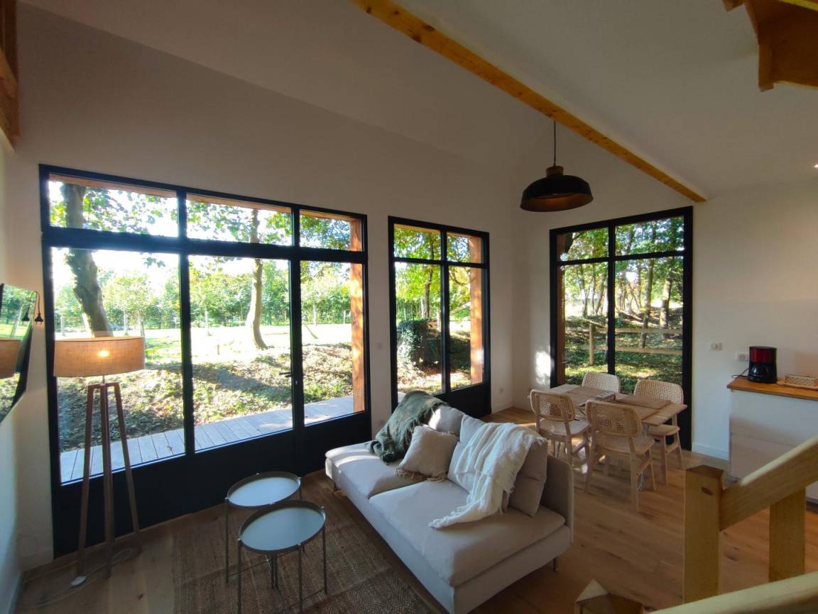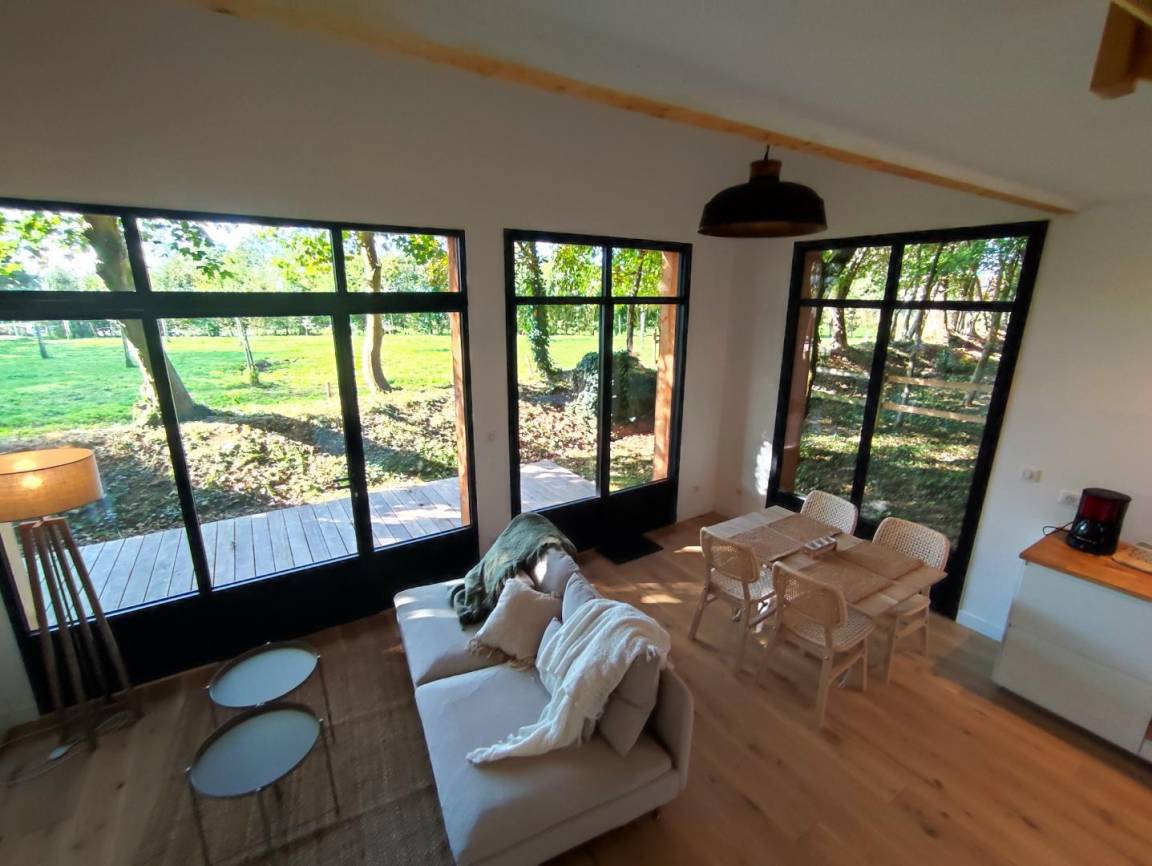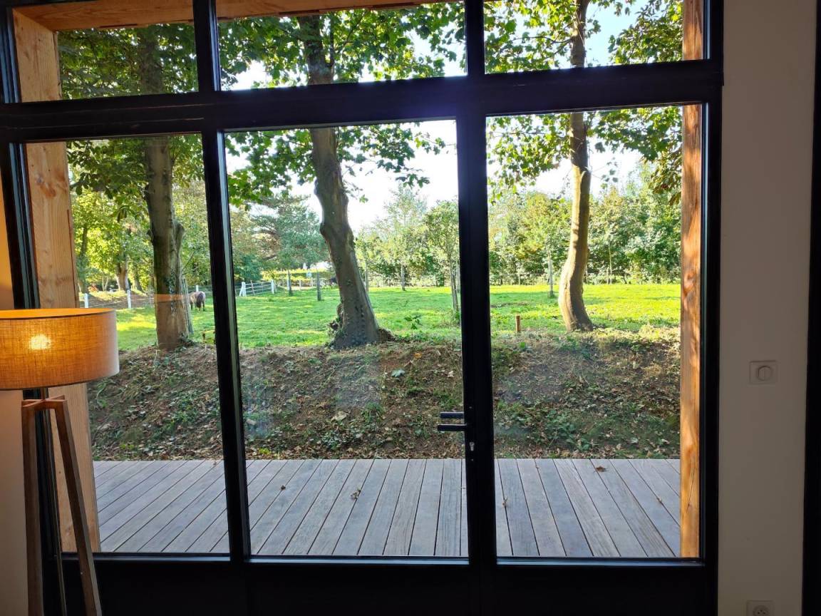 „Maison agréable, originale et belle avec les baies vitrées donnant sur le pré aux ânes !Intérieur propre et jolie. Bémol sur la propreté des extérieurs, beaucoup de toiles d’araignée, allées pleines d’orties qui ne permettaient pas de laisser les enfants dehors seuls pour profiter et aller voir les animaux. Baies vitrées non nettoyées ce qui gâche un peu la vue (qui est quand meme le point fort de l’habitation).Ustensiles de cuisine en petite quantité ou manquant (couteaux de découpe, balance...). Un barbecue aurait pu être un petit pour l’été. La propriétaire est tres sympathiques et accessible. Le lieu est vraiment reposant et dépaysant, de plus il est bien situe en normandie (le havre, etretat, honfleur...).“