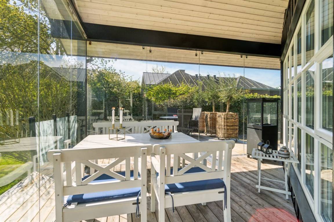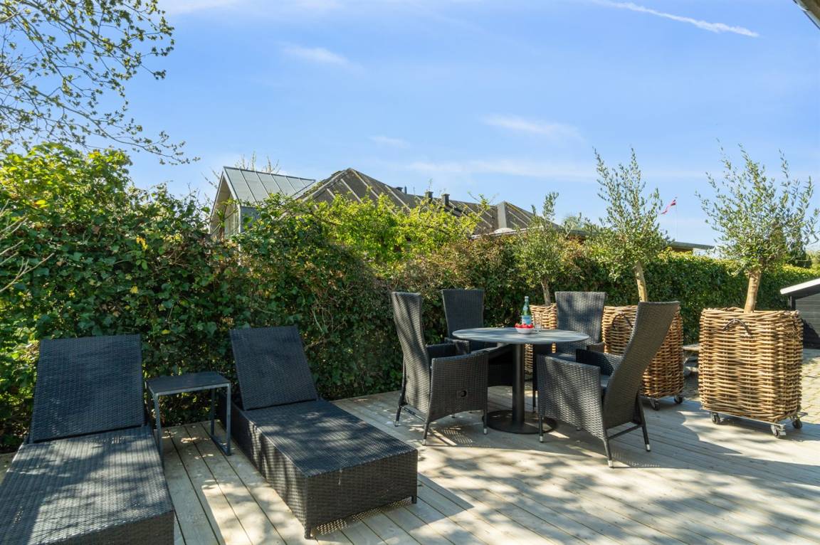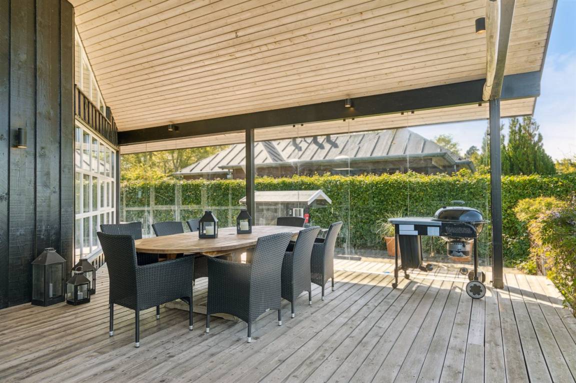 DraußenDie Ferienunterkunft liegt auf einem 985 m² großen Gartengrundstück. Die Entfernung zum Meer beträgt 100 m. Die nächste Einkaufsmöglichkeit liegt 2000 m entfernt. Es steht ein offenes Terrassenareal zur Verfügung. Außerdem gibt es überdachte Terrasse. Es steht ein Grill zur Verfügung. Es steht ein Carport zur Verfügung. Parkplatz auf dem Grundstück.