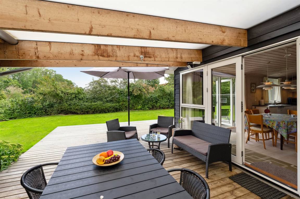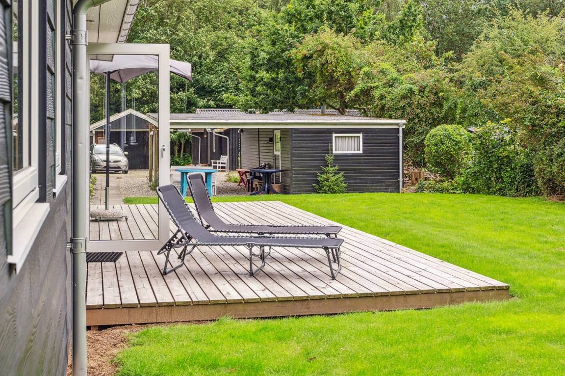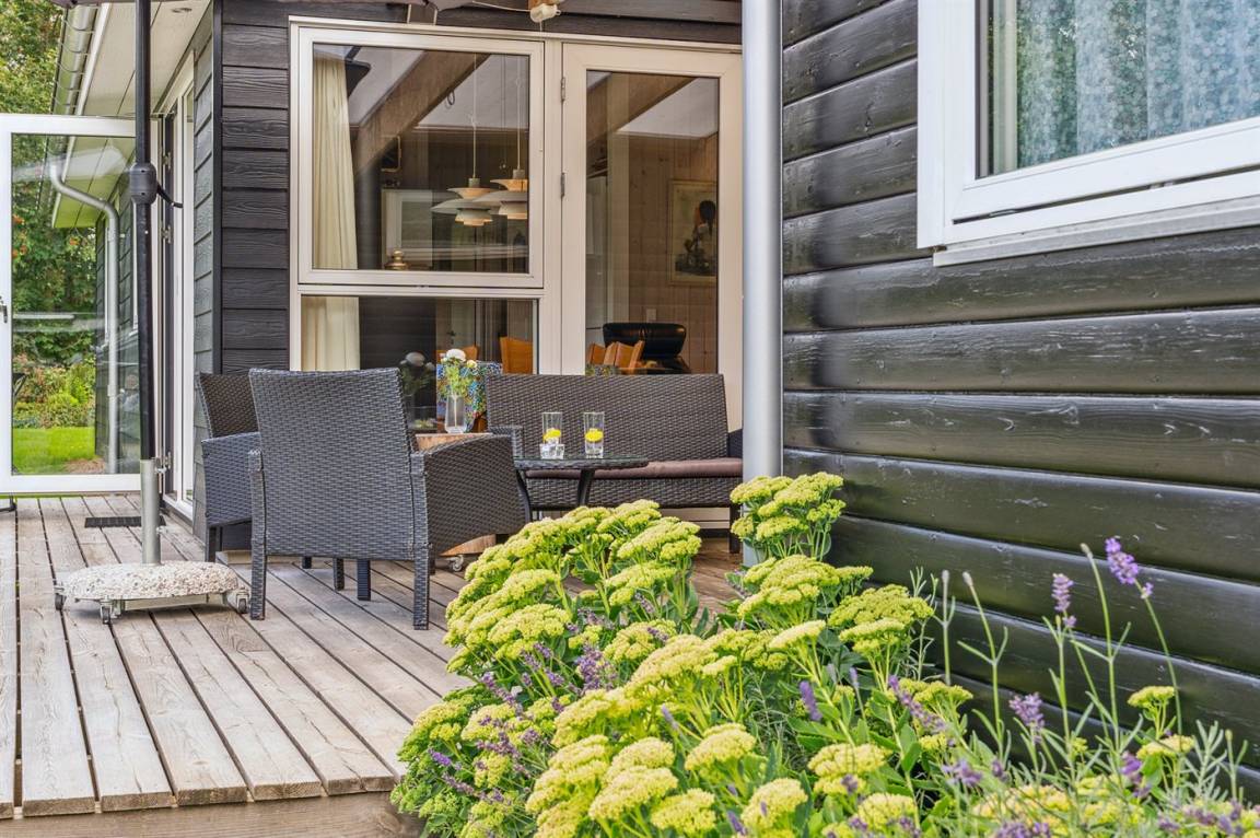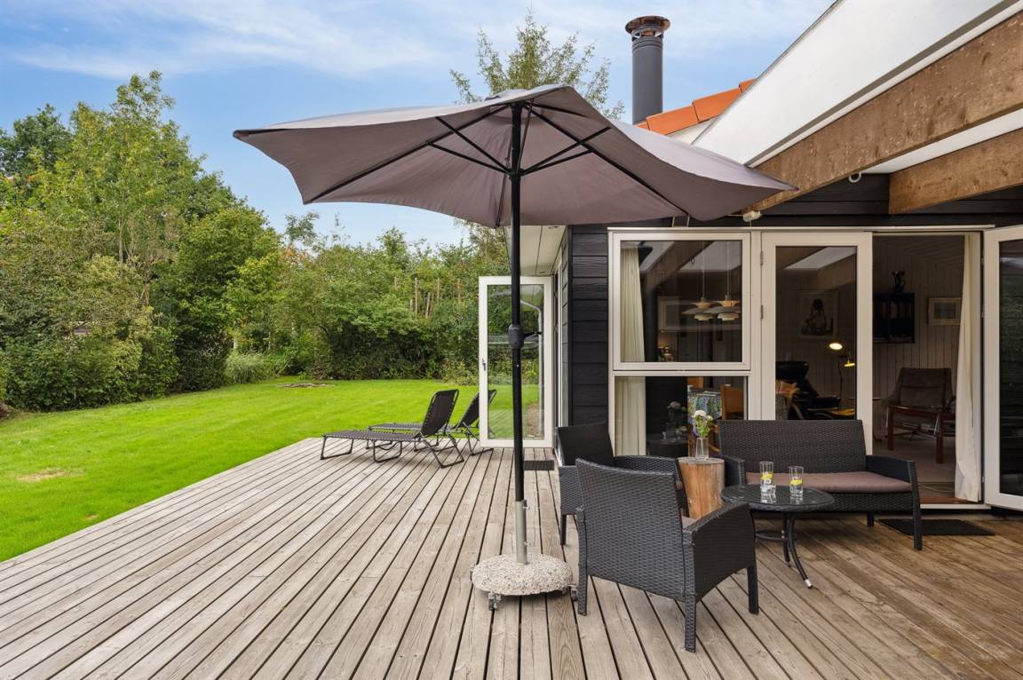 Das Ferienhaus ist hell, modern und mit einer wirklich guten Einrichtung ausgestattet, die gut zu einer Familie passt. Zwei der Schlafplätze befinden sich in der gemütlichen Nische, die sich an den Küchen-/Essbereich anschließt. Das Ferienhaus liegt sehr ungestörten auf dem großen Grundstück und die Terrassen sind wunderschön und teilweise überdacht. Hier gibt es Terrassen auf beiden Seiten des Ferienhauses, sodass du sowohl die Morgensonne als auch die Nachmittagssonne genießen kannst.