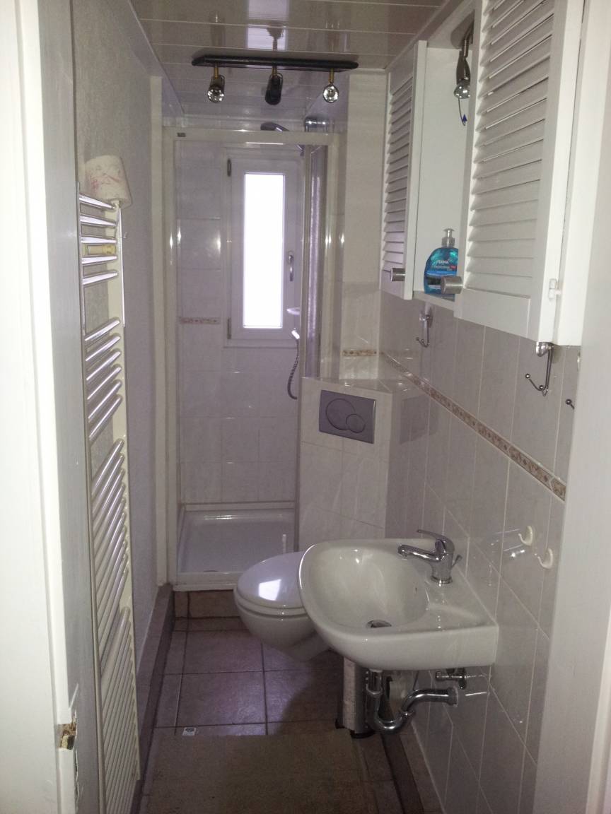 Das kleine Bad ist mit einem Fenster, einer Dusche , einem WC und einem kleinen Waschbecken ausgestattet. Handtücher bzw. Duschtücher stehen jedem Gast kostenlos zur Verfügung. Ein Haartrockner fehlt ebenfalls nicht.