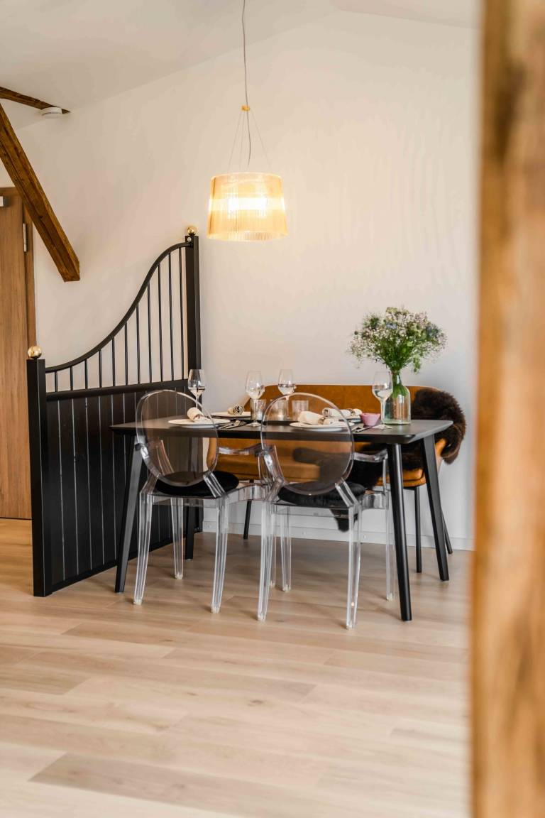 Im Sommer 2017 haben wir diesen Hof gekauft. Nach einer langen Planungsphase Begann der Umbau des Wohnhauses und konnte 2019 abgeschlossen werden. 2020 begannen wir mit dem Umbau des Schweinestalls zum Pferdestall. Heute beherbergt dieser 5 Boxen und Paddocks. Parallel dazu haben wir das Obergeschoss zu in unseren schönen Ferienwohnungen ausgebaut.
