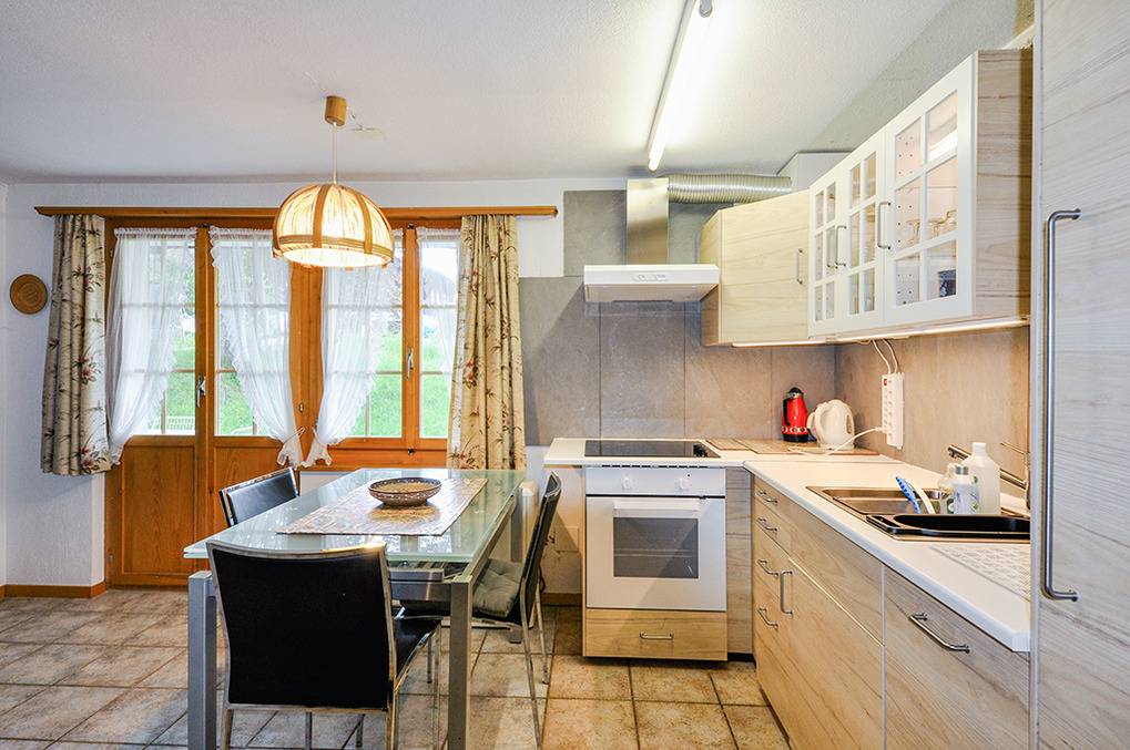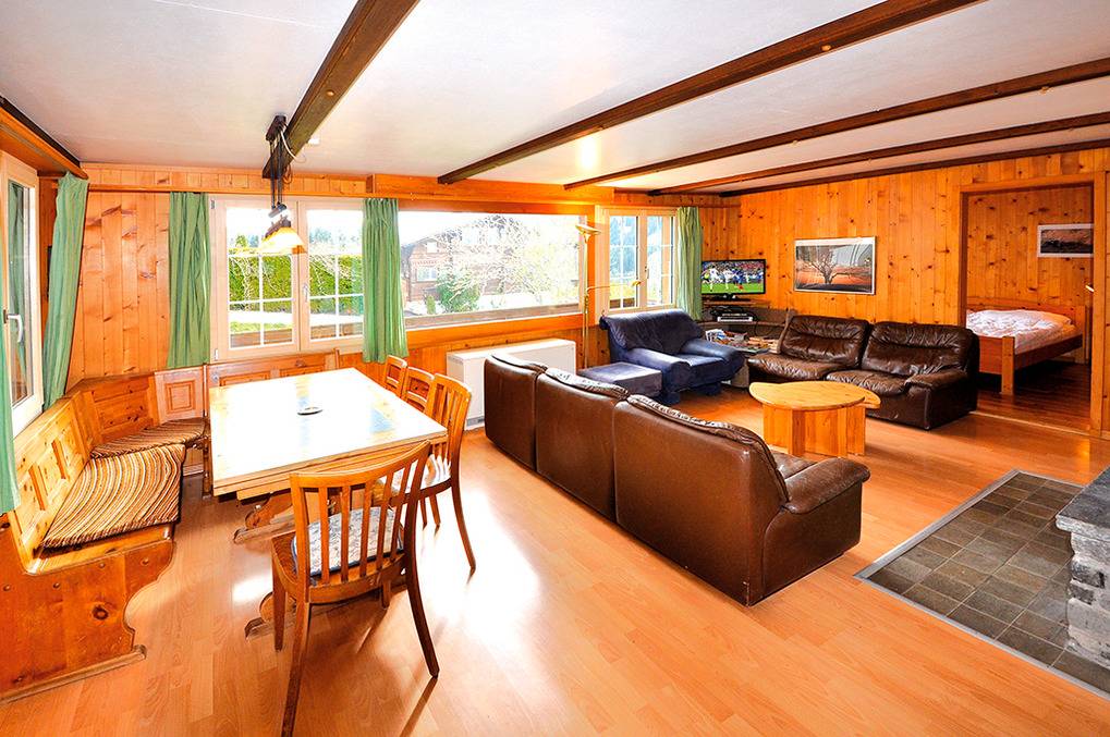 Haus: Sehr schönes Schweizer Holzchalet mit Kamin. 7-Zimmerhaus mit ca. 110 qm Wohnfläche über 3 Etagen. Wohnlich-gemütliche Einrichtung. Internetzugang über W-Lan (Gebühr). Nichtraucherwohnungen. Heizung durch E-Nachtspeicherheizung, Warmwasser über E-Boiler. Waschmaschine, Grill. Garten mit großer Spielwiese am Haus. Pkw-Stellplätze am Haus.