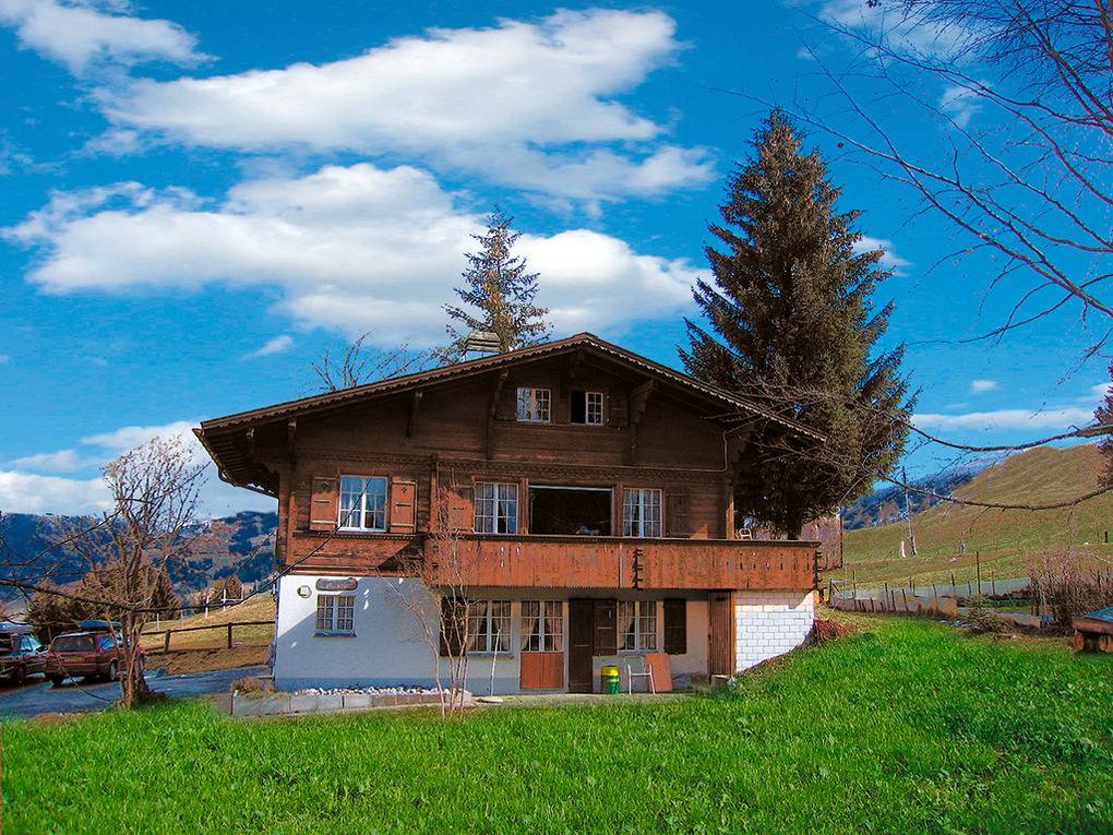Ort: Zweisimmen bei Gstaad im Berner Oberland. Ruhige Lage oberhalb des Ortes, umgeben von Almwiesen. Blick ins Tal und auf die umliegende Bergwelt. Schöne Wanderwege beginnen direkt vor der Haustür! Ortsmitte mit Freibad, Bergbahnen 2,9 km.