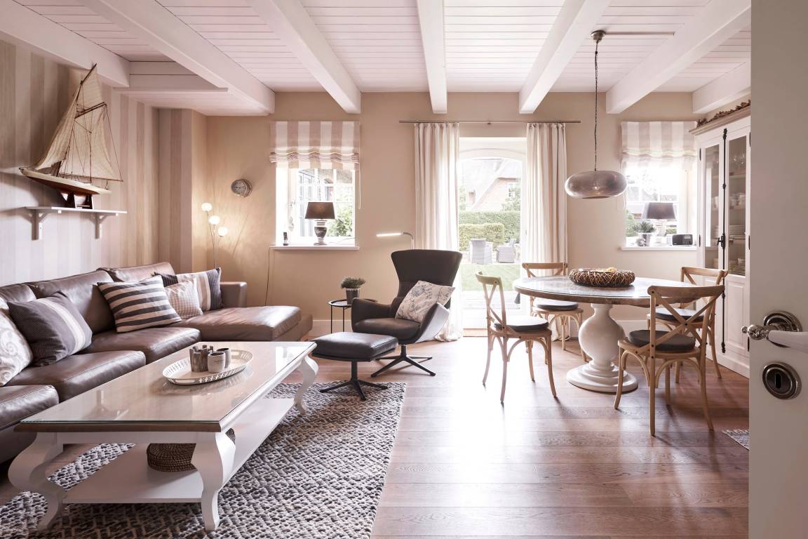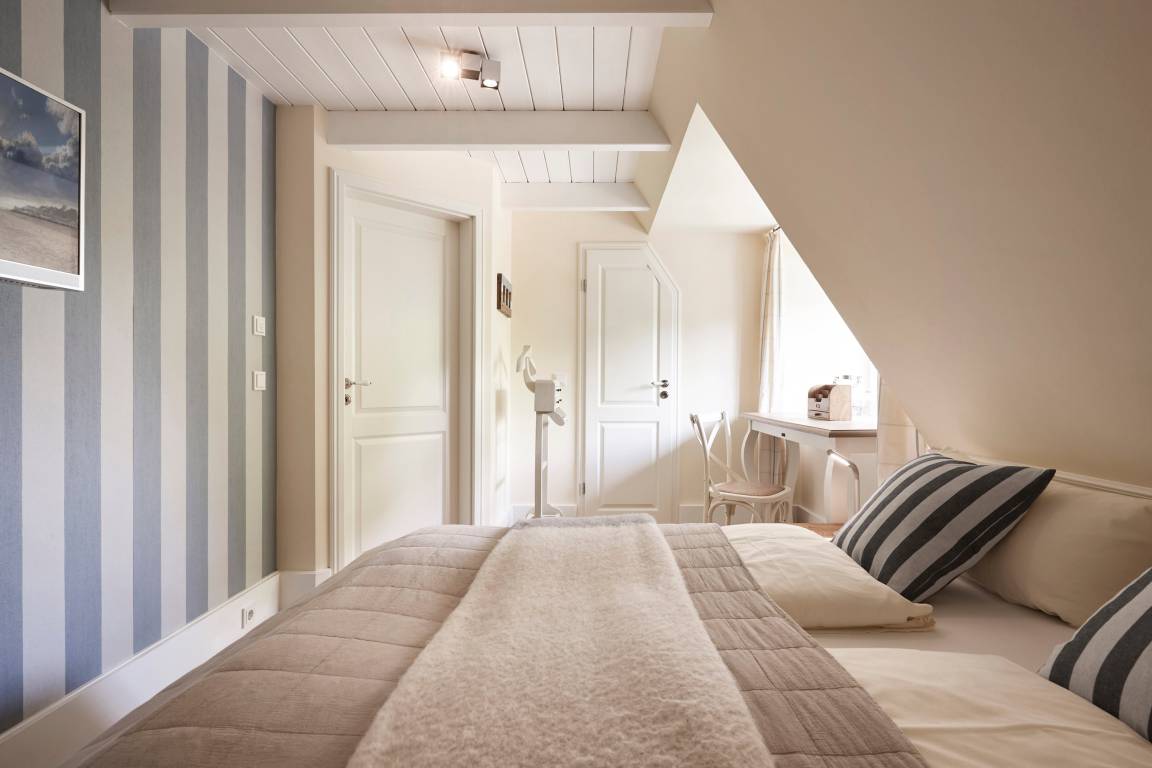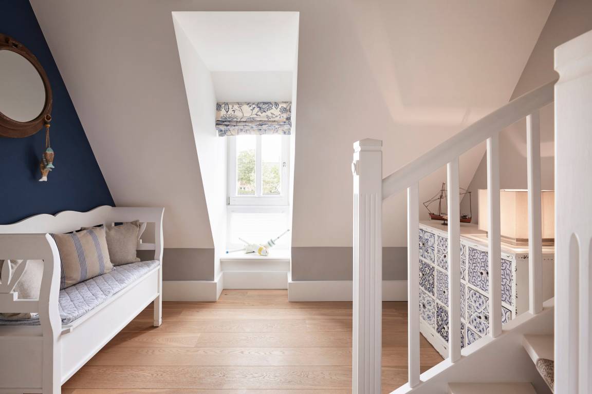 In der großen Scheune des 1872 nach einem Brand wiedererrichteten Martens-Hofes wurde die Föhrer Vergangenheit lebendig: Ein Museum welches, von Freud und Leid, Alltag und Fest des früheren Lebens auf dem Lande sprach. 2014/2015 wurde dieser historische, ehemalige Bauernhof am Rande der Marsch mit viel Liebe zum Detail restauriert und in 7 Einheiten aufgeteilt. Sie wohnen im Hausteil 3. Dieser wurde individuell und mit viel Liebe zum Detail eingerichtet. Genießen Sie das Wohnen im historischen Gebäude. Oevenum ist ein wunderschönes, belebtes Friesendorf mit gewachsener Infrastruktur. Rund um die Friedenseiche in der Buurnstrat findet in den Sommermonaten der Oevenumer Dorfmarkt statt, dazu gibt es Einkaufsmöglichkeiten wie Bäcker und Lebensmittelgeschäft.