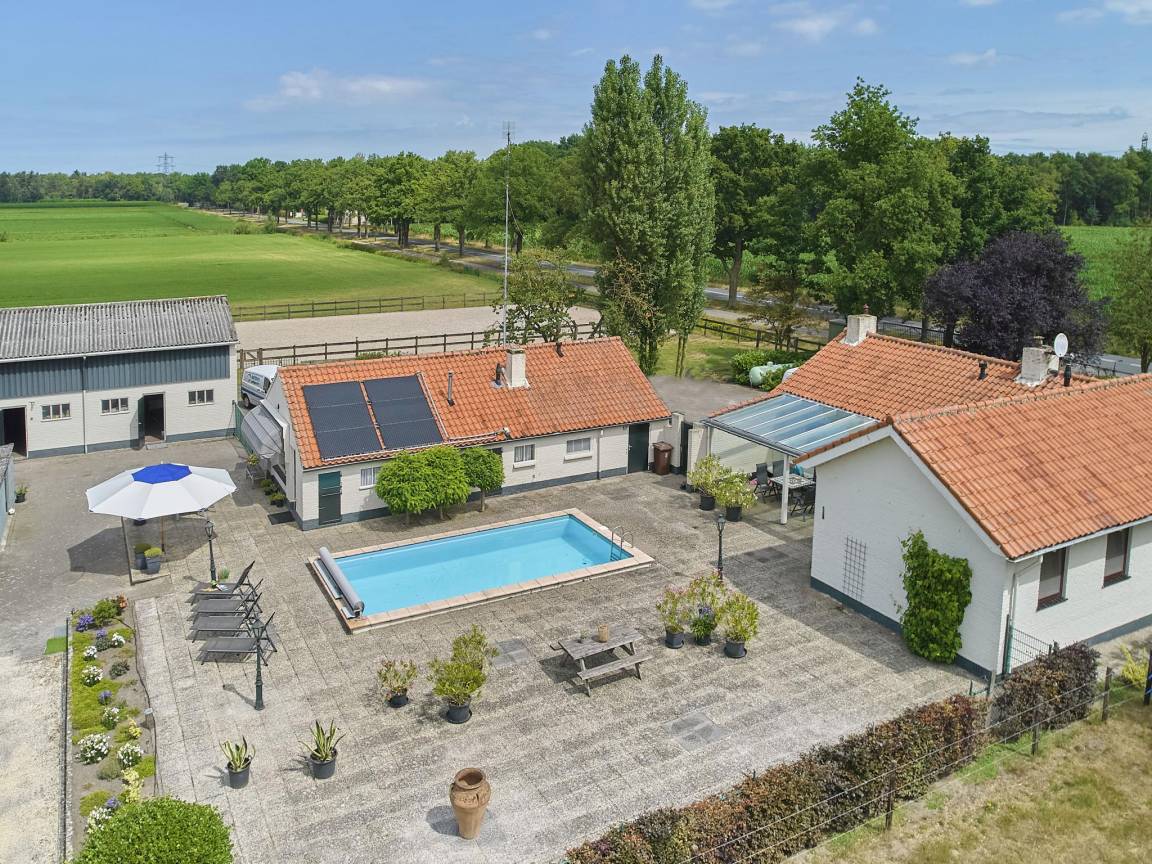 Hausbeschreibung : Dieses gemütliche Ferienhaus liegt ruhig auf dem Lande zwischen den Orten Oisterwijk und Oirschot. Das Haus ist komplett ausgestattet und verfügt über ein gemütliches Wohnzimmer, eine voll ausgestattete Küche, zwei komfortable Schlafzimmer und ein Badezimmer. In dem großen, umzäunten Garten können Sie auf der Terrasse die Aussicht auf die umliegenden Wiesen genießen. Entspannen Sie sich im beheizten Schwimmbad, oder spielen Sie eine schöne Partie Boule.