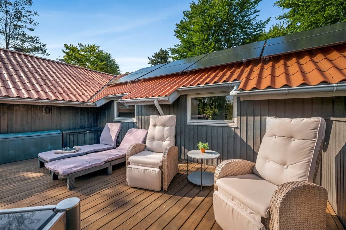 Ein wirklich schönes und gepflegtes Ferienhaus mit einer guten Holzterrasse. Das Haus ist über die Jahre renoviert und liegt auf einem Grundstück, das an das schöne Naturgebiet angrenzt.