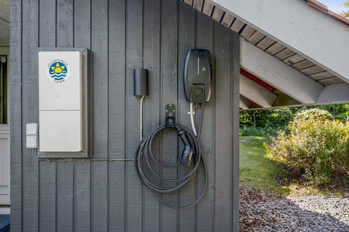 DraußenDie Ferienunterkunft liegt auf einem 1535 m² großen Naturgrundstück. Die Entfernung zum Meer beträgt 12000 m. Die nächste Einkaufsmöglichkeit liegt 600 m entfernt. Es steht ein 45 m² Terrassenareal zur Verfügung. Außerdem gibt es 12 m² überdachte Terrasse. Schaukel. Sandkasten. Es ist ein Ladestecker für Elektroautos installiert. Mit einer Ladeleistung von 11 kW. Parkplatz auf dem Grundstück.