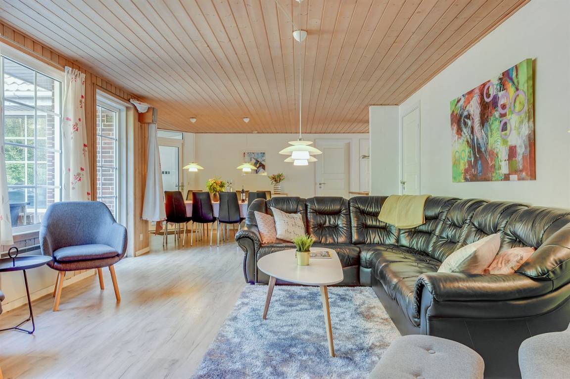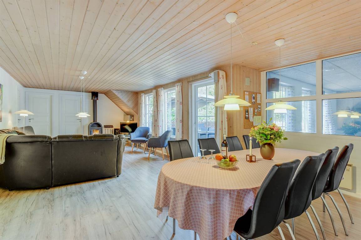 EinrichtungDas Ferienhaus eignet sich für 10 Personen sowie 1 Kleinkind bis zu 3 Jahren. Die Ferienunterkunft hat eine Wohnfläche von 160 m² und wurde 1995 gebaut. 2017 wurde die Ferienunterkunft teilweise renoviert. Es ist erlaubt 2 Haustiere mitzubringen. Die Ferienunterkunft ist mit energiesparender Wärmepumpe ausgestattet. Die Ferienunterkunft ist mit Waschmaschine ausgestattet. Wäschetrockner. Tiefkühlmöglichkeit mit 70 Liter Nutzinhalt. Es gibt außerdem einen Kaminofen. Für die jüngsten Feriengäste ist 1 Kinderhochstuhl vorhanden.
