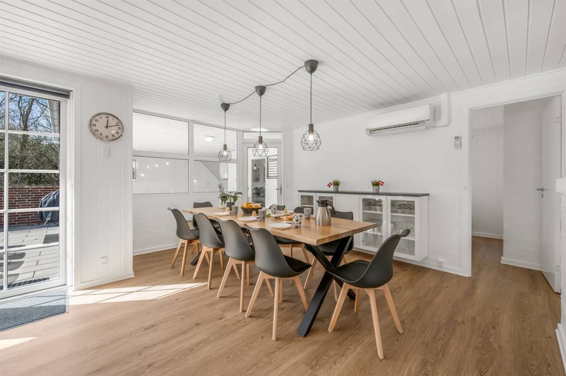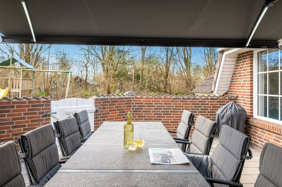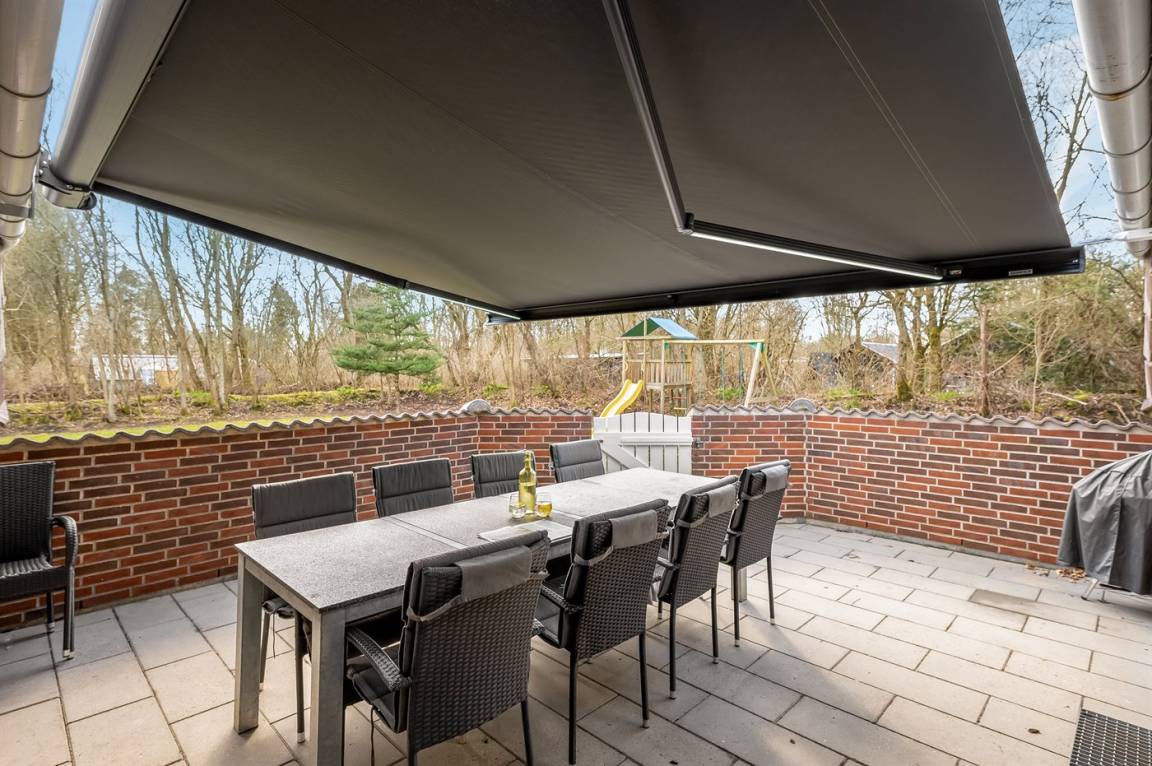 Das Haus ist aus rotbraunen Steinen gebaut, wurde 1993 errichtet und 2026 modernisiert. Es liegt in einem schönen Ferienhausgebiet auf einem Naturgrundstück mit Bepflanzung. Auf dem Grundstück gibt es außerdem eine angelegte Boulebahn. In der Verbindung der Modernisierung wurden in allen 5 Schlafzimmern, in der Küche und im Wohnzimmer neue Böden verlegt. Alle Wände wurden frisch gestrichen, außerdem gibt es neue Betten/Matratzen sowie neue Möbel im Wohnbereich. Insgesamt wirkt das Haus hell und einladend.