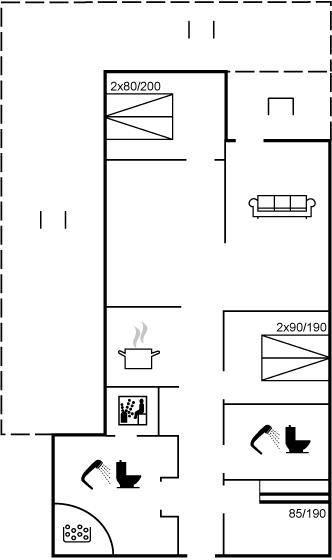 SchlafverhältnisseDie Schlafplätze verteilen sich auf 3 Schlafräume. 4 Schlafplätze in Doppelbetten. 2 Schlafplätze in einem Etagenbett. Ferner steht ein Kinderbett zur Verfügung.