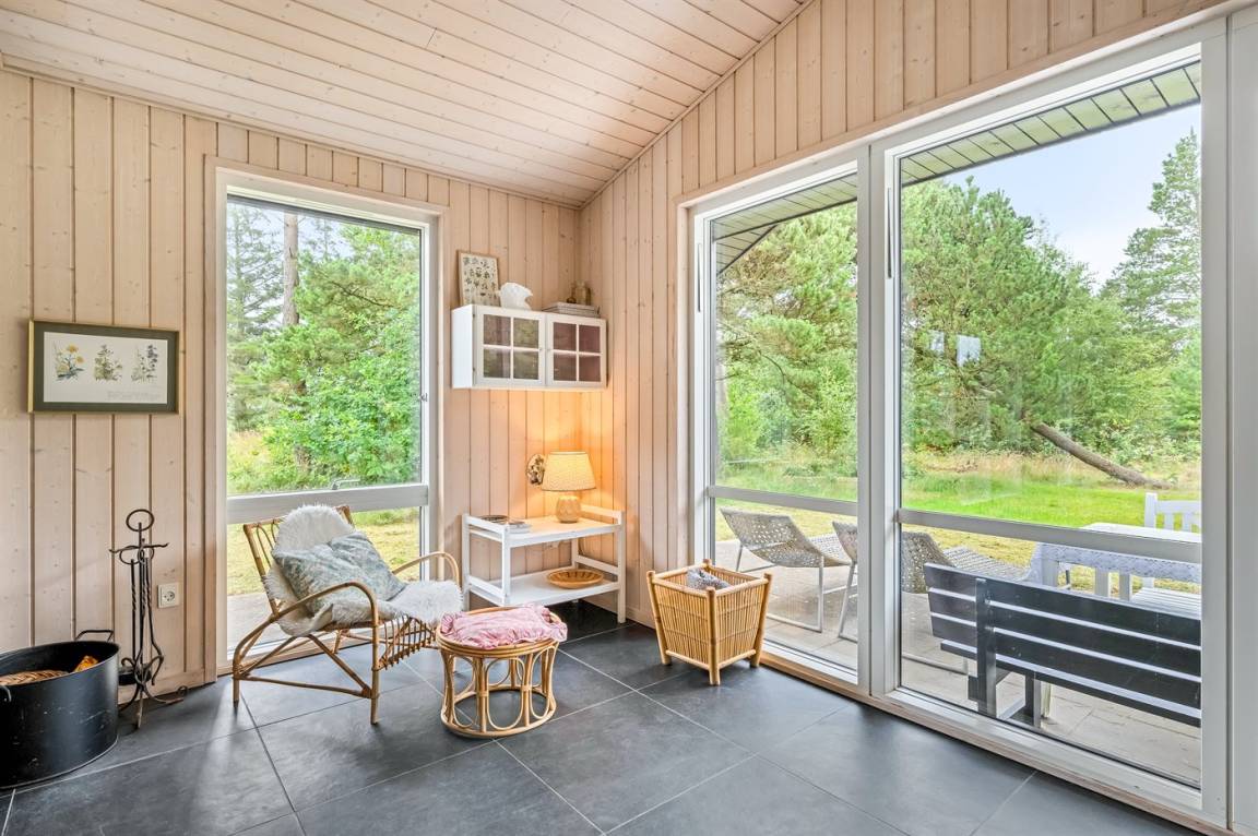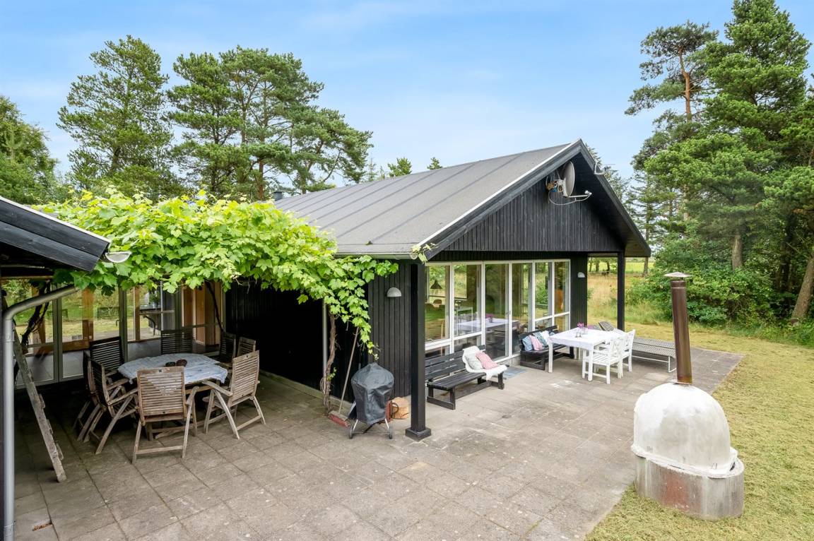 Ferienhaus mit Whirlpool im ruhigen Ferienhausgebiet bei Mosevrå auf einem geschlossenen Naturgrundstück mit Panoramablick über die Ho-Bucht gelegen.