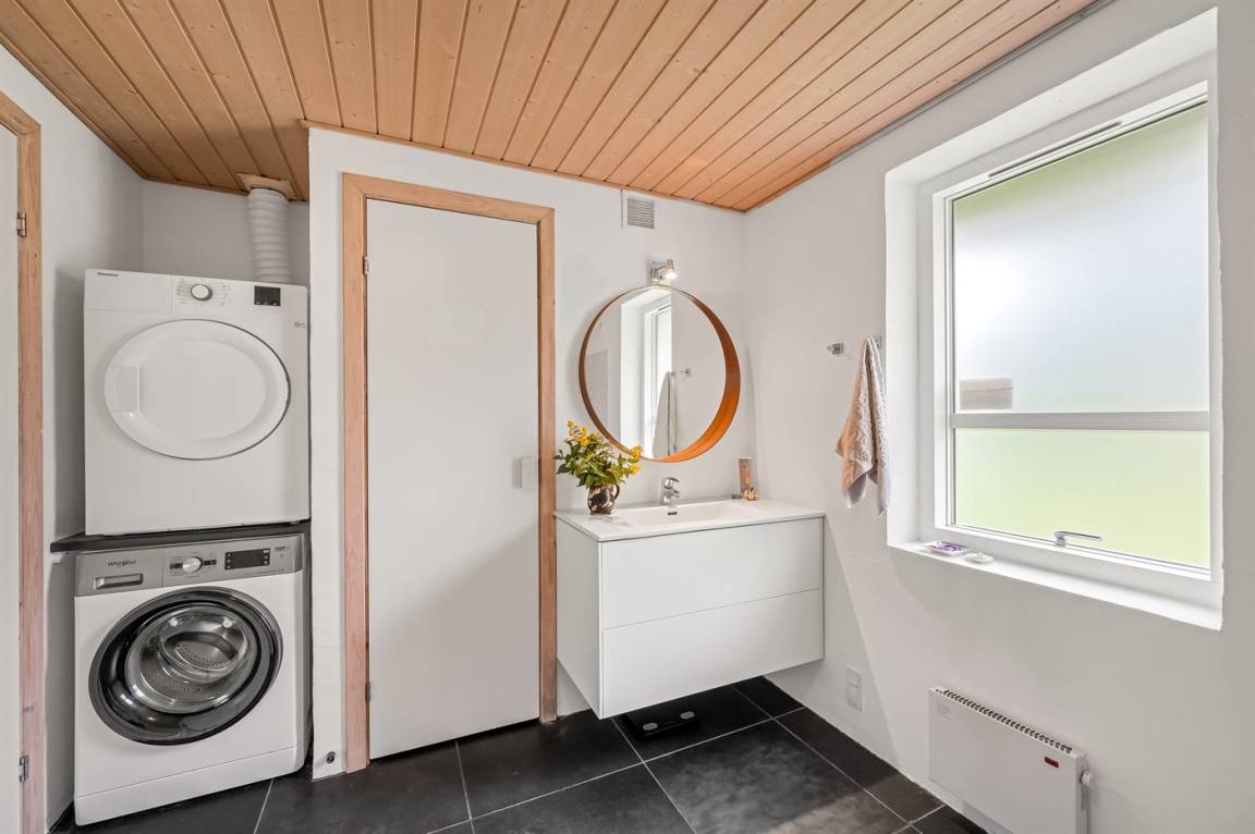 DraußenDie Ferienunterkunft liegt auf einem 2500 m² großen Naturgrundstück. Die Entfernung zum Meer beträgt 7600 m. Die Entfernung zum Fjord beträgt 1200 m. Die nächste Einkaufsmöglichkeit liegt 4700 m entfernt. Es steht ein offenes Terrassenareal zur Verfügung. Es steht ein Grill zur Verfügung. Parkplatz auf dem Grundstück.