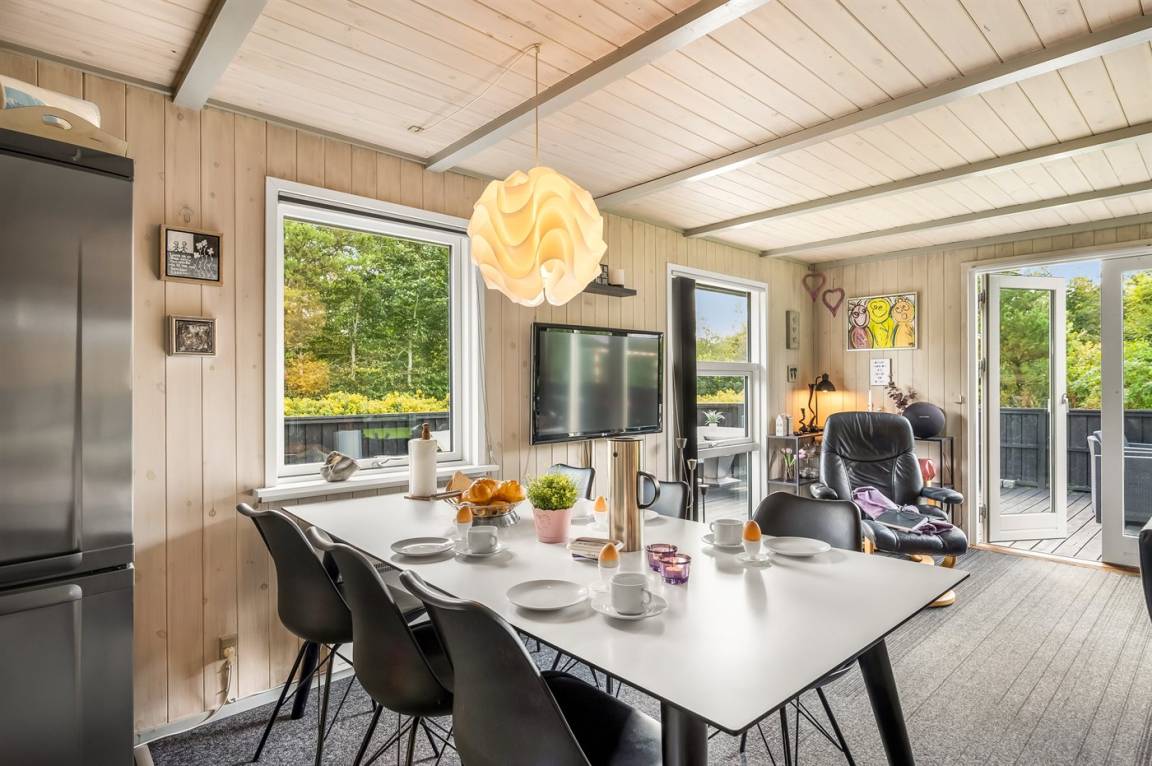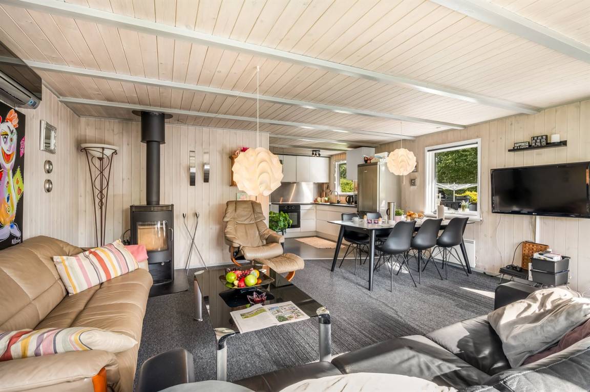 An kühleren Tagen kannst du es dir drinnen gemütlich machen – mit einem guten Buch oder vor dem Fernseher, wo du TV2 Play, Viaplay und Nordisk Film streamen kannst. Es gibt eine Internetverbindung mit einer Geschwindigkeit von 1000/1000 Mbit.