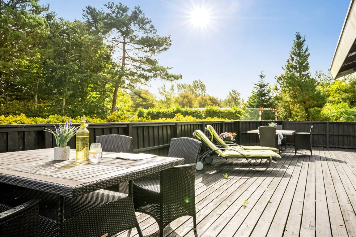 Hier spürst du Urlaubsstimmung sowohl drinnen als auch draußen – mit Terrassen rund ums Haus, Windschutzhütte, Trampolin, Nestschaukel usw.