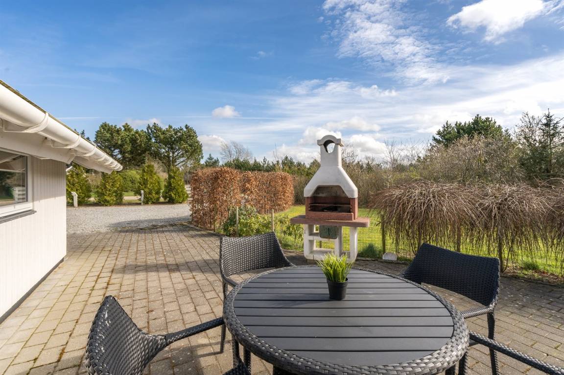 DraußenDie Ferienunterkunft liegt auf einem 1587 m² großen Naturgrundstück. Das Grundstück ist eingezäunt. Die Entfernung zum Meer beträgt 12000 m. Die nächste Einkaufsmöglichkeit liegt 550 m entfernt. Es steht ein 60 m² Terrassenareal zur Verfügung. Außerdem gibt es 6 m² überdachte Terrasse. Schaukel. Sandkasten. Es steht ein Grill zur Verfügung. Parkplatz auf dem Grundstück.