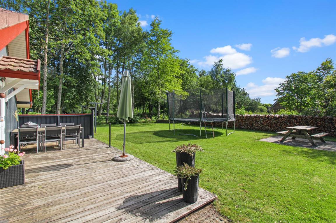 DraußenDie Ferienunterkunft liegt auf einem 1500 m² großen Naturgrundstück. Die Entfernung zum Meer beträgt 10000 m. Die nächste Einkaufsmöglichkeit liegt 500 m entfernt. Es steht ein 40 m² Terrassenareal zur Verfügung. Außerdem gibt es 10 m² überdachte Terrasse. Sandkasten. Trampolin.Lagerfeuerstelle. Windschutzhütte. Es steht ein Grill zur Verfügung. Es steht ein Carport zur Verfügung. Parkplatz auf dem Grundstück.