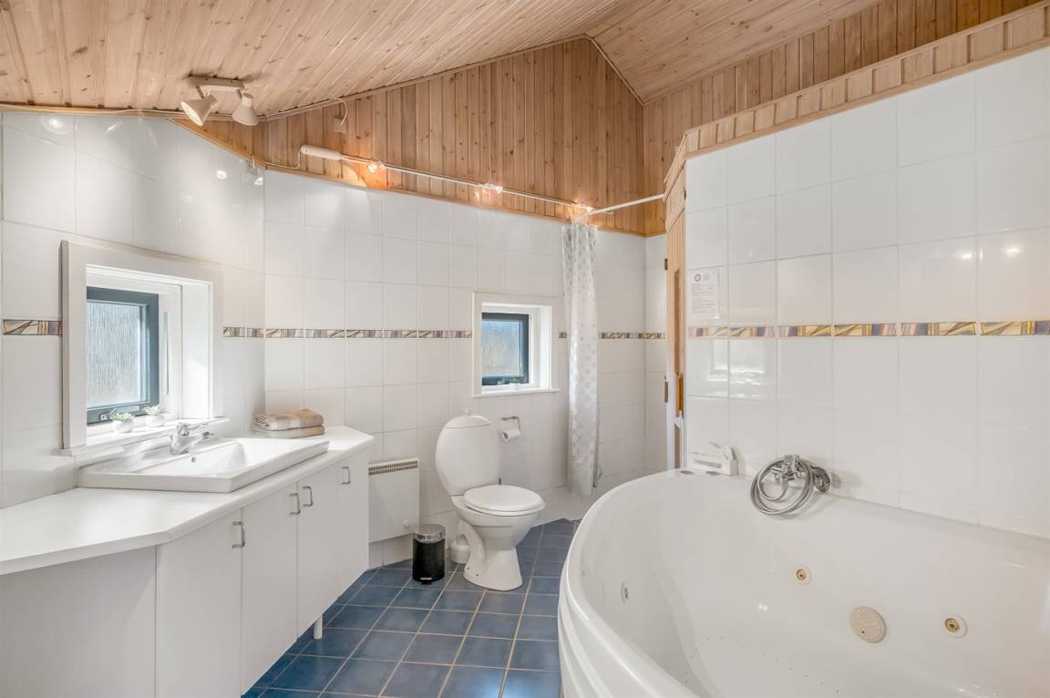 Das Haus verfügt über drei gute Schlafzimmer sowie ein eingebautes Doppelbett in einer Ecke des Wohnzimmers. Das Badezimmer bietet zusätzlichen Komfort in Form eines Whirlpools für zwei Personen sowie direkten Zugang zur hauseigenen Sauna – perfekt zum Entspannen nach einem Tag am Meer.