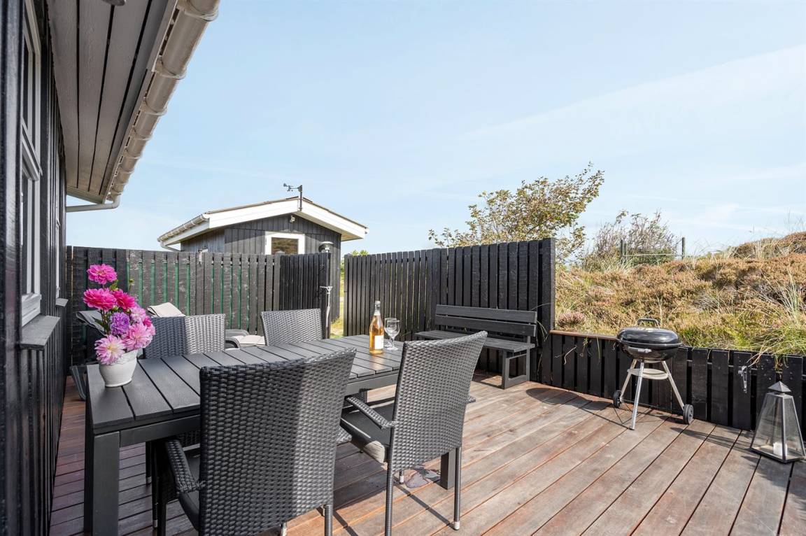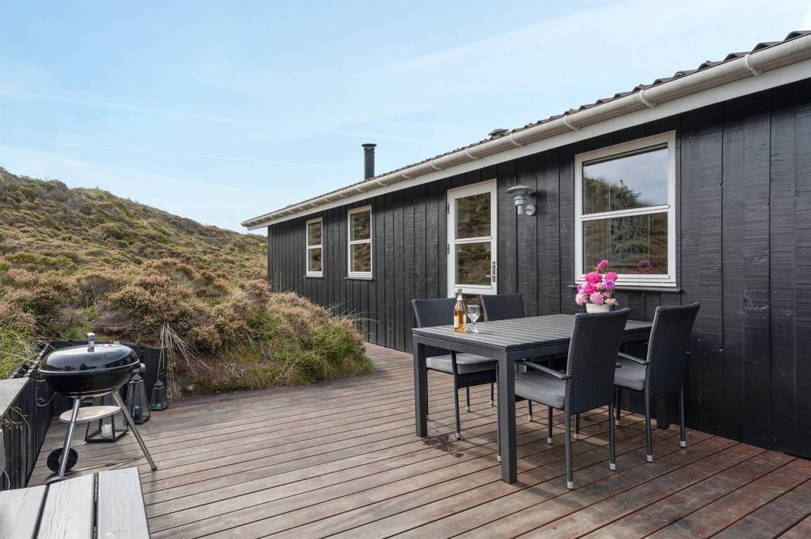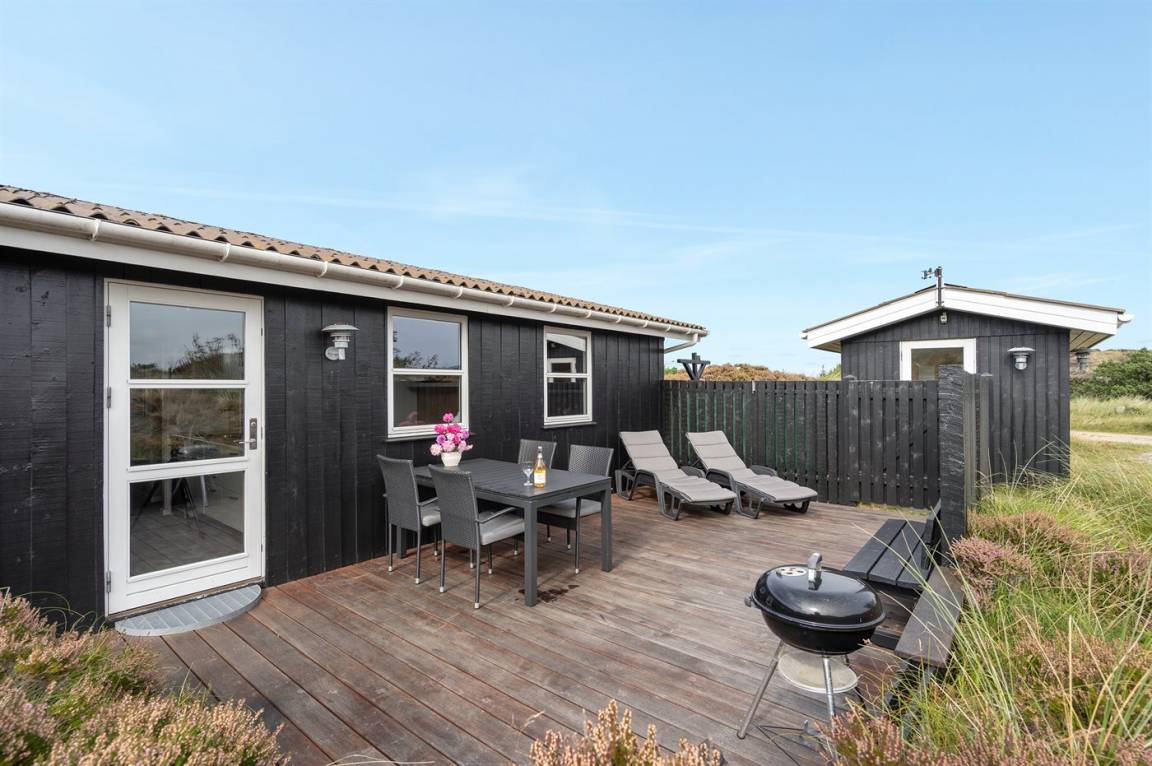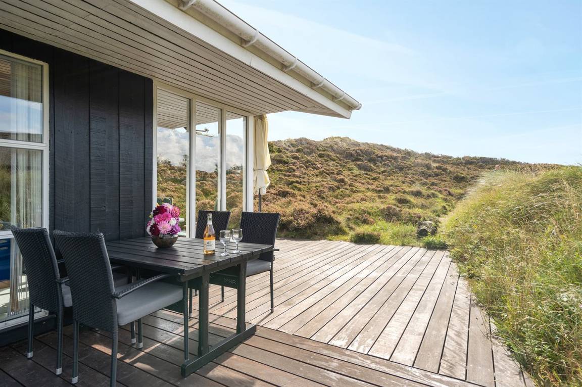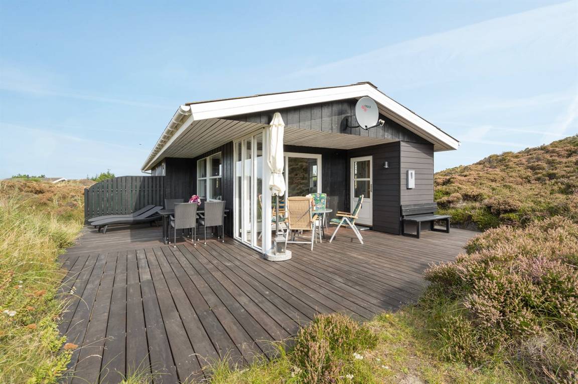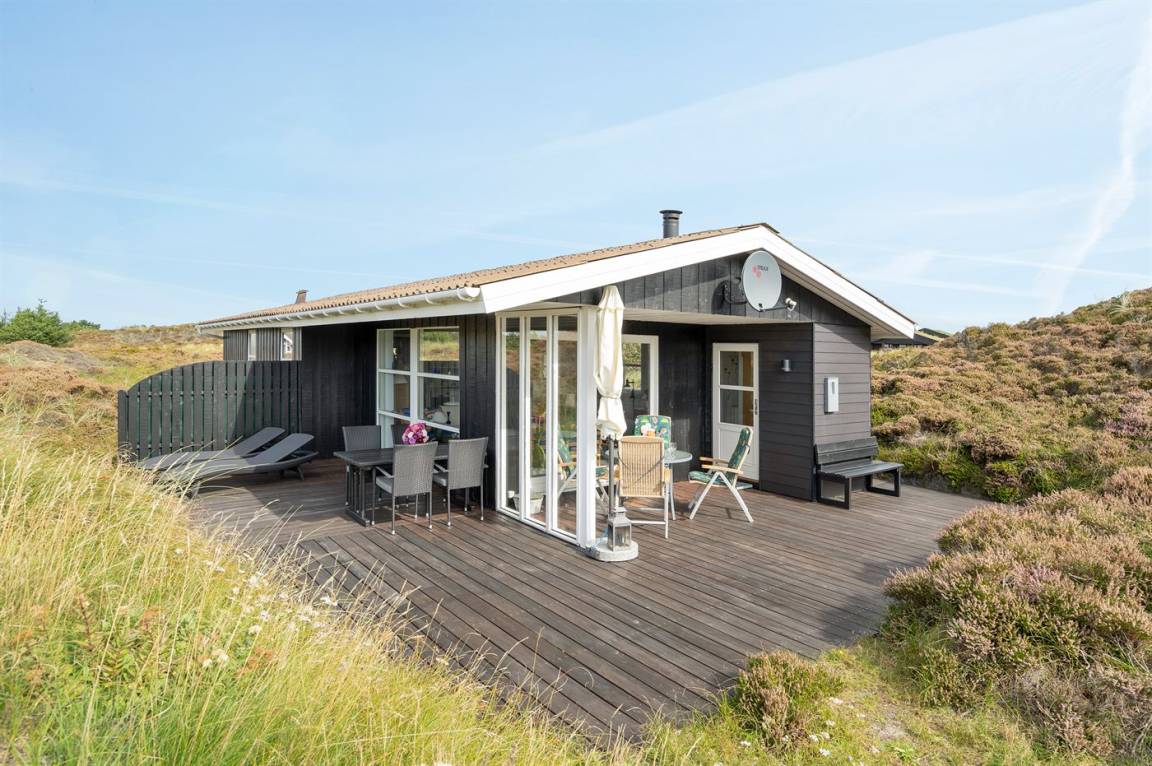Das Ferienhaus liegt auf einem 1.588 m² großen Grundstück zwischen Hügeln, Heidekraut und Strandhafer. Vom Grundstück gibt es Zutritt zu einem der höchsten Aussichtspunkte in der Umgebung. Das Ferienhaus wurde 1984 gebaut und hat eine Wohnfläche von 74 m². Die nächste Einkaufsmöglichkeit liegt in Vejers – 3.500 m Ferienhaus entfernt.