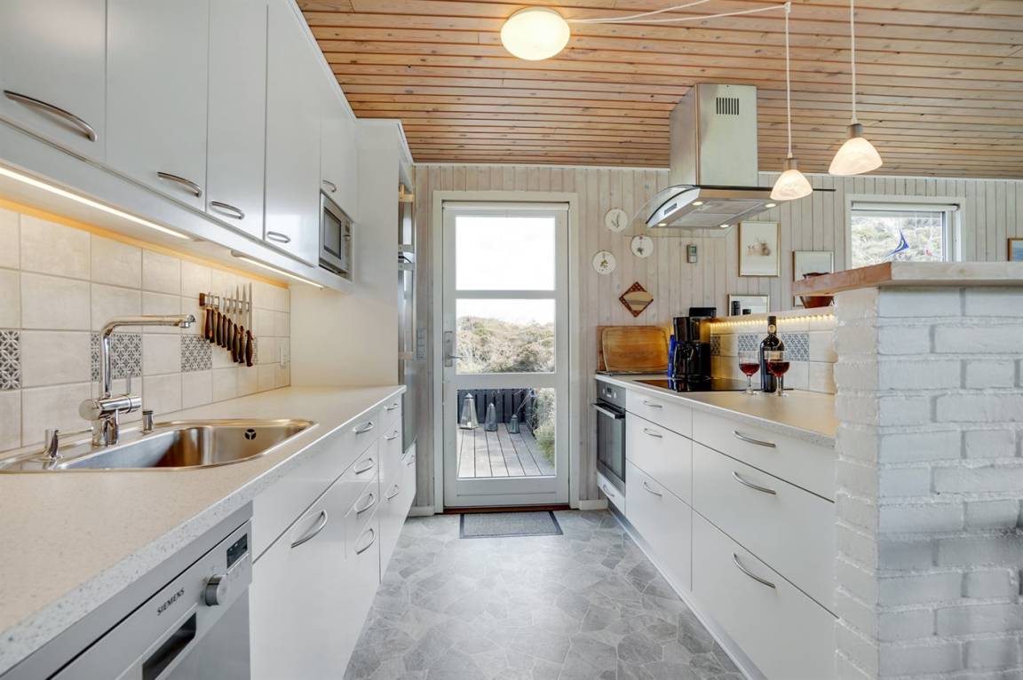 Die Küche ist mit u. a. Geschirrspüler, Kühlschrank, Gefrierschrank mit einer Kapazität von 48 Litern, 4-Elektrokochmulden, Dunstabzugshaube, Konvektionsofen und Mikrowelle ausgestattet. Außerdem stehen ein elektrischer Wasserkocher, Kaffeemaschine, Toaster sowie Handmixer zur Verfügung.