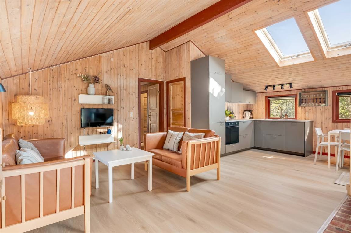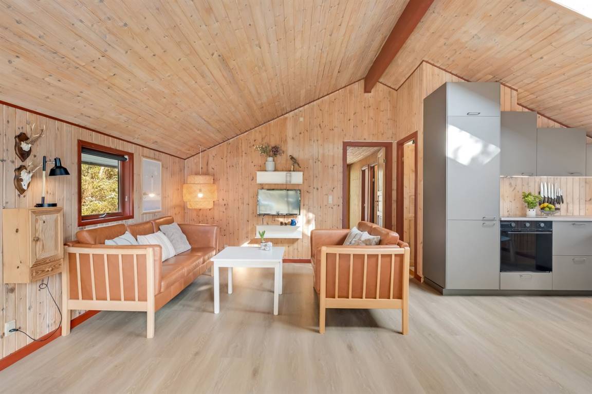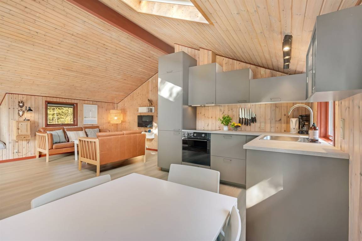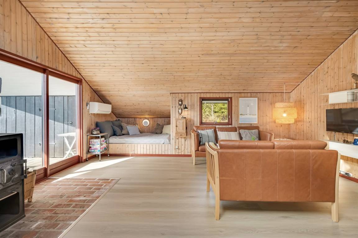 Auf einem großen Naturgrundstück in einer Sackgasse findest du dieses Ferienhaus. Das Haus liegt in der Nähe eines der besten Badestrände Dänemarks, der zu einem erfrischenden Bad im kühlen Nass einlädt, aber auch zu lange Spaziergänge, bei denen man nicht selten ein Stück Bernstein am Strand findet.