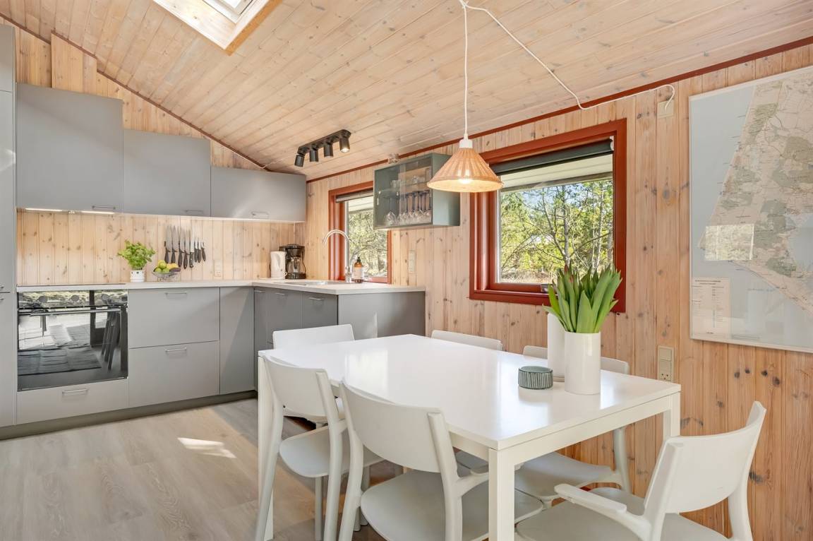 DraußenDie Ferienunterkunft liegt auf einem 2500 m² großen Naturgrundstück. Die Entfernung zum Meer beträgt 7400 m. Die Entfernung zum Fjord beträgt 1100 m. Die nächste Einkaufsmöglichkeit liegt 4300 m entfernt. Es steht ein offenes Terrassenareal zur Verfügung. Außerdem gibt es überdachte Terrasse. Es steht ein Grill zur Verfügung. Parkplatz auf dem Grundstück.