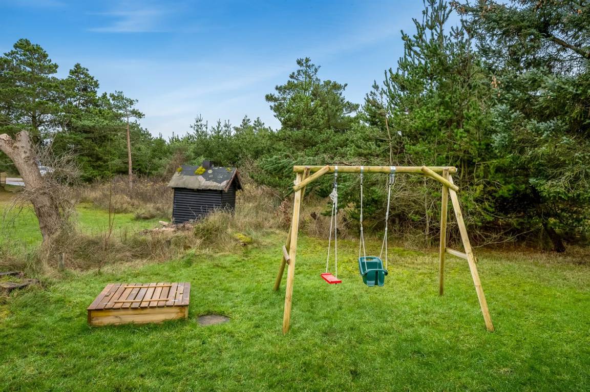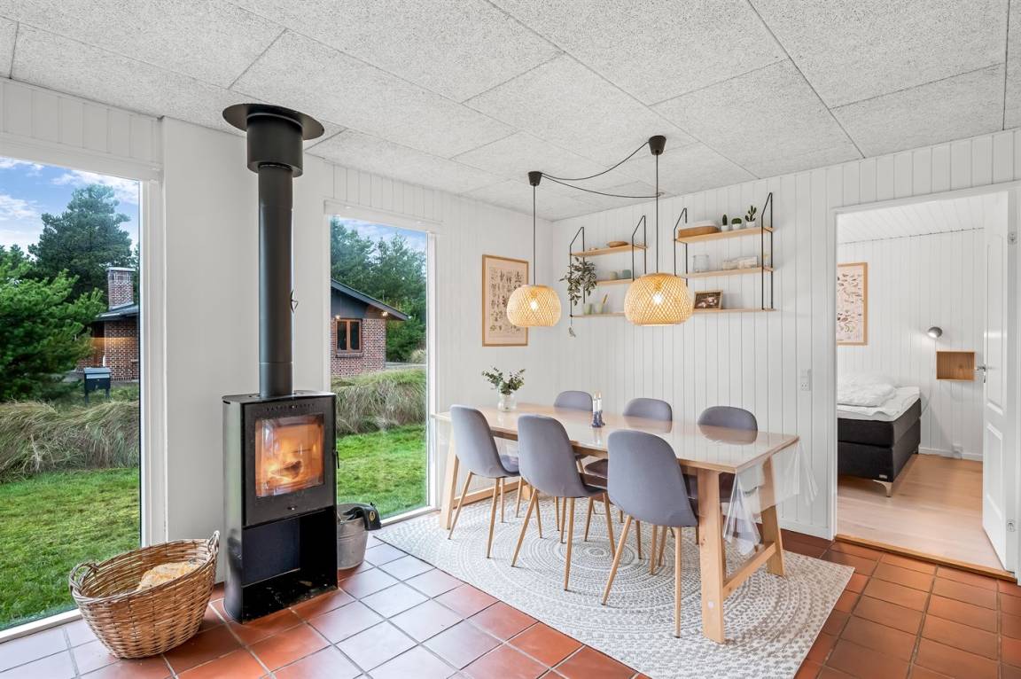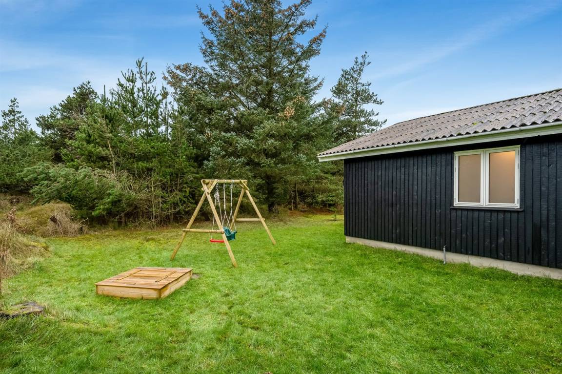 Das Ferienhaus hat ein kombiniertes Ess- und Wohnzimmer mit Kaminofen. Die Küche ist gut ausgestattet, u.a. mit Mikrowelle, Geschirrspüler und Waschmaschine. Es gibt drei Schlafzimmer. Vom Wohnzimmer aus hast du Zugang zur Terrasse, wo du das Spiel der Kinder auf der Schaukel oder im Sandkasten genießen kannst.