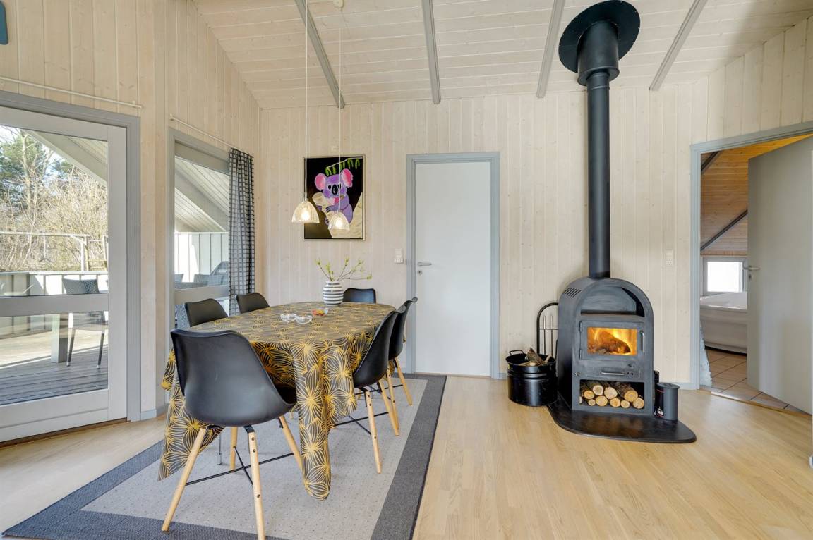 EinrichtungDas Ferienhaus eignet sich für 6 Personen. Die Ferienunterkunft hat eine Wohnfläche von 89 m² und wurde 1997 gebaut. 2007 wurde die Ferienunterkunft teilweise renoviert. Es ist erlaubt 1 Haustier mitzubringen. Die Ferienunterkunft ist mit energiesparender Wärmepumpe ausgestattet. Die Ferienunterkunft ist mit Waschmaschine ausgestattet. Tiefkühlmöglichkeit mit 35 Liter Nutzinhalt. Es gibt außerdem einen Kaminofen.