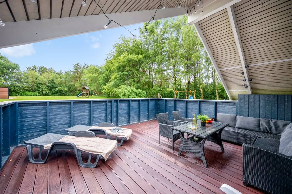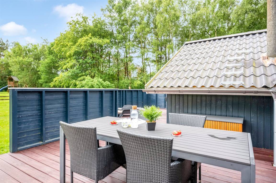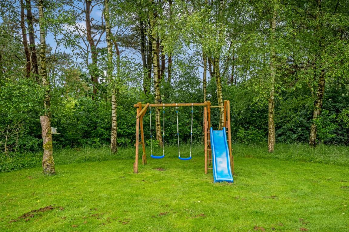 Das schöne Ferienhaus liegt auf einem herrlich großen Grundstück mit guten und großen Holzterrassen, Sandkasten und Spielgerüst – hier gibt es also viel Platz zum Spielen und für Ballspiele. Außerdem habt ihr Zugang zu einem Schuppen, in dem Platz für Fahrräder oder einen Kinderwagen ist.