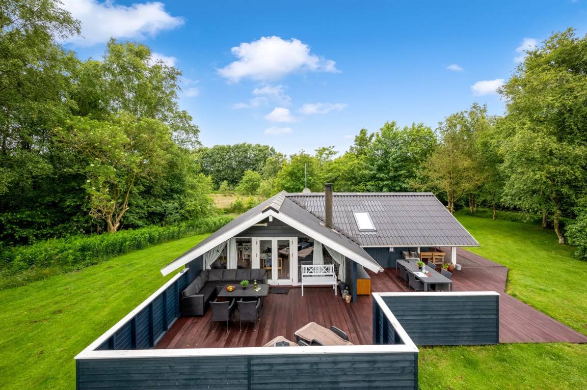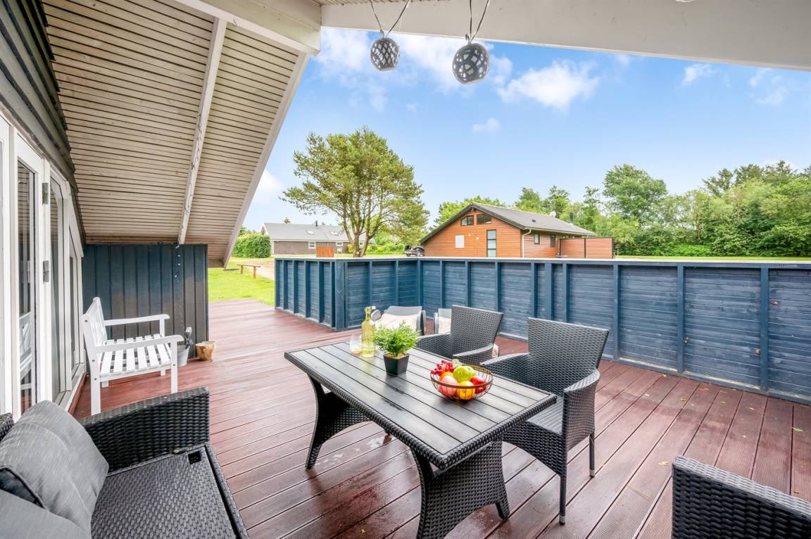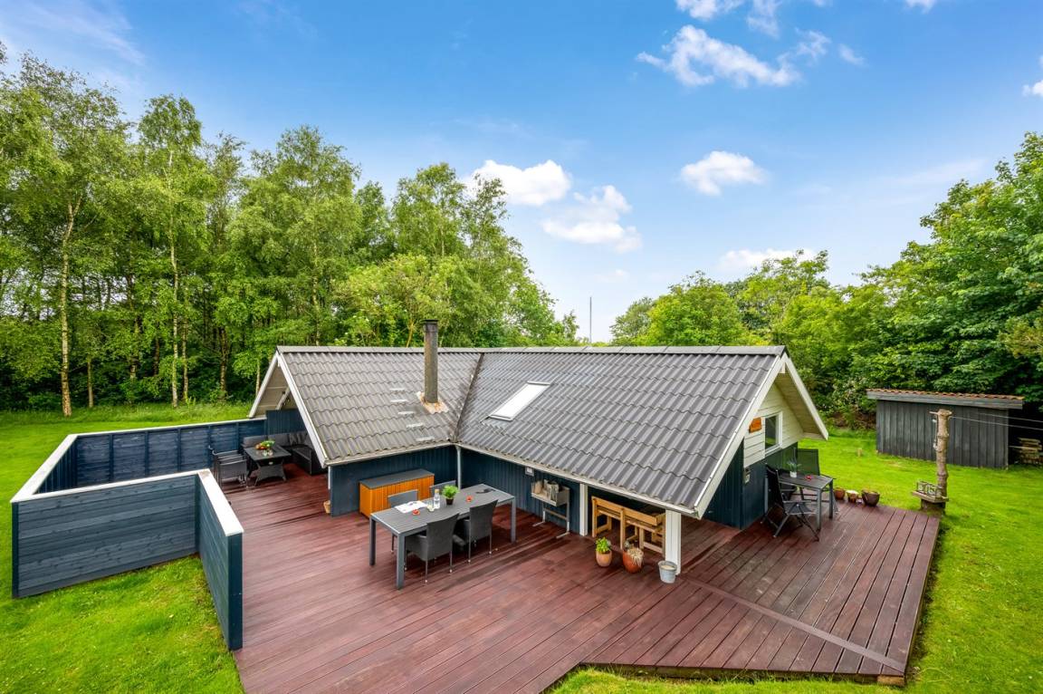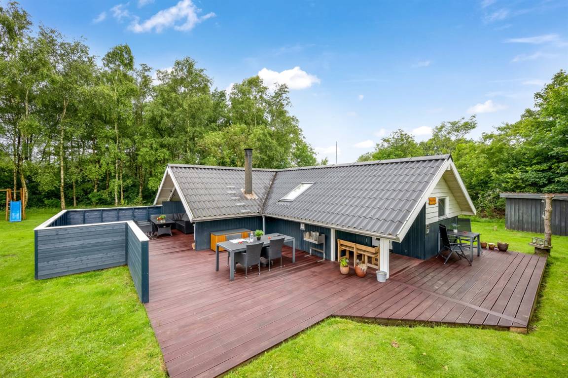 Das schöne Ferienhaus liegt auf einem herrlich großen Grundstück mit guten und großen Holzterrassen, Sandkasten und Spielgerüst – hier gibt es also viel Platz zum Spielen und für Ballspiele. Außerdem habt ihr Zugang zu einem Schuppen, in dem Platz für Fahrräder oder einen Kinderwagen ist.