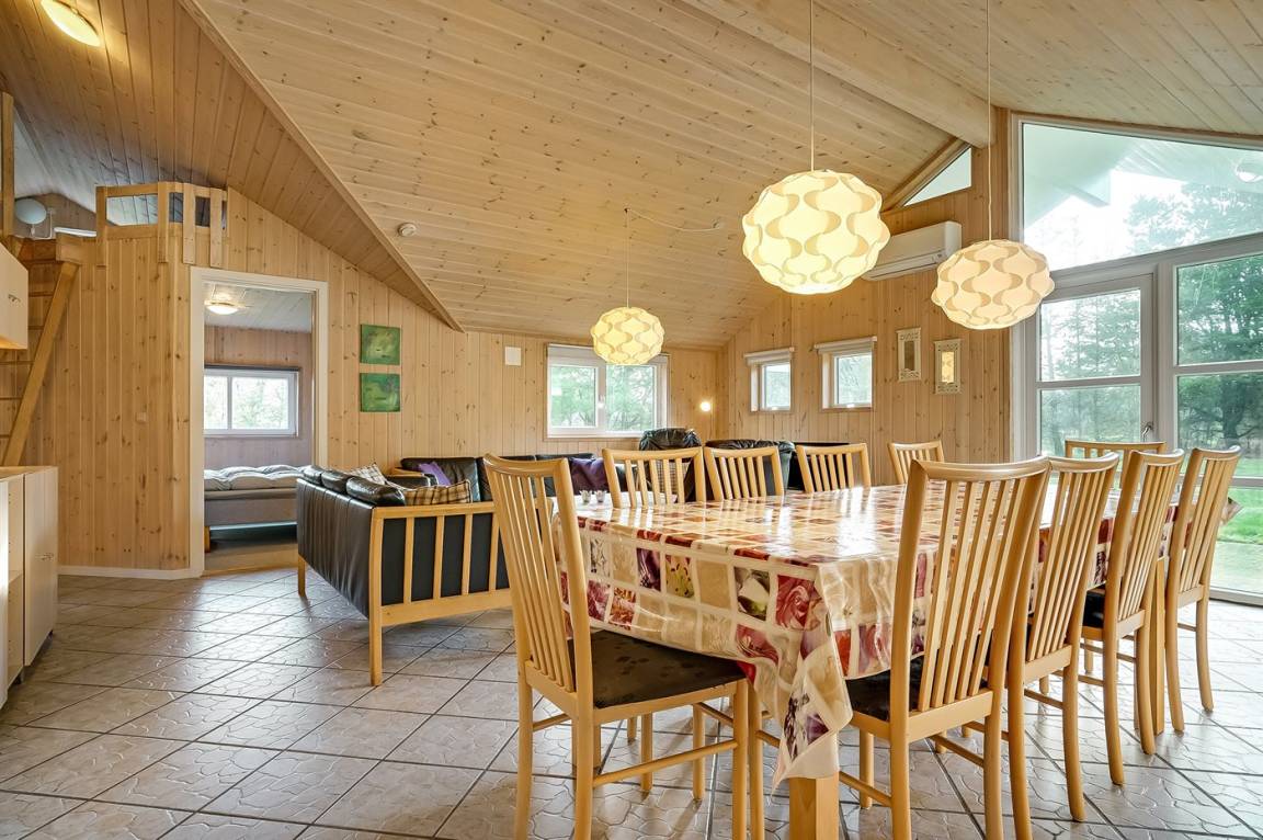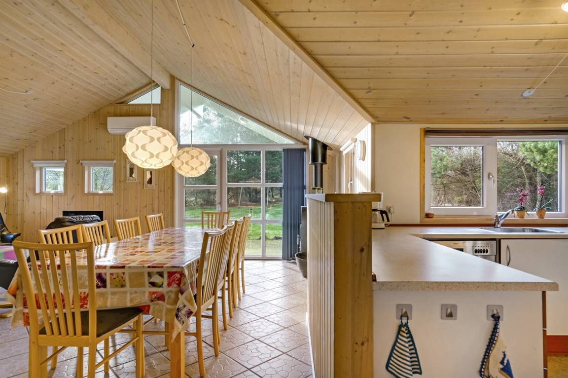 Dieses geräumige und gemütlich eingerichtete Ferienhaus liegt auf einem großen und abgeschirmten Grundstück im Feriengebiet Jegum Ferieland. Das Grundstück, auf dem sich die Kinder so richtig tummeln können, grenzt an ein unter Naturschutz stehendes Naturgebiet an. Übrigens: Die 2 Schlafplätze auf Matratzen befinden sich im offenen Obergeschoss des Hauses.