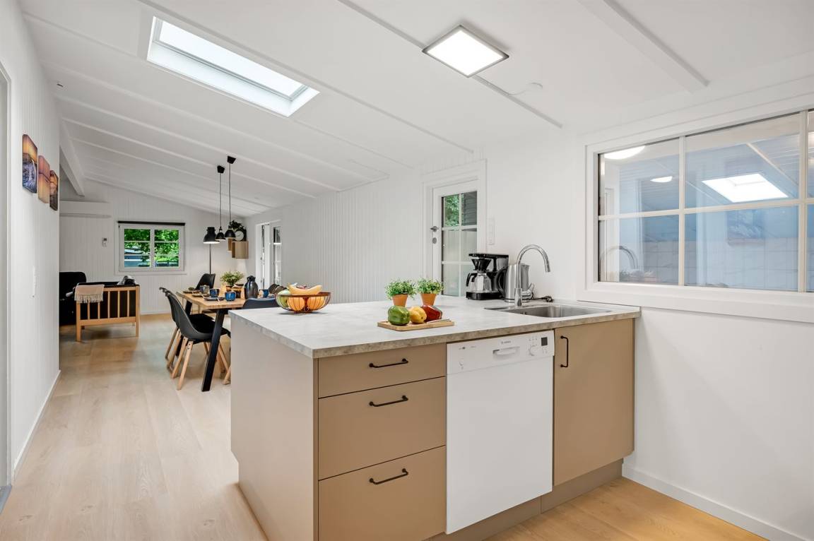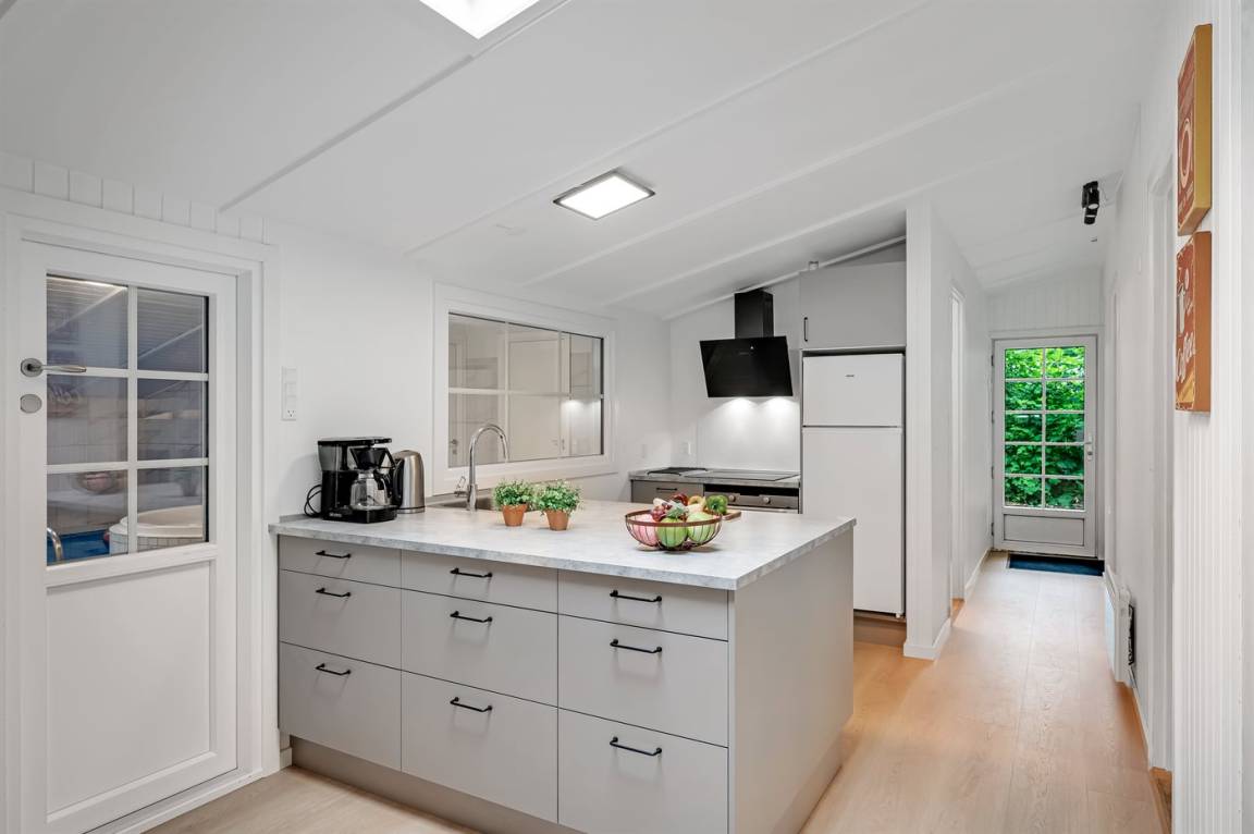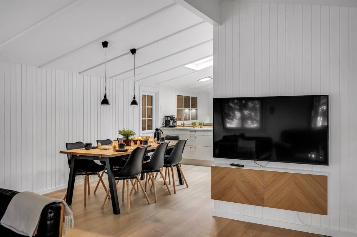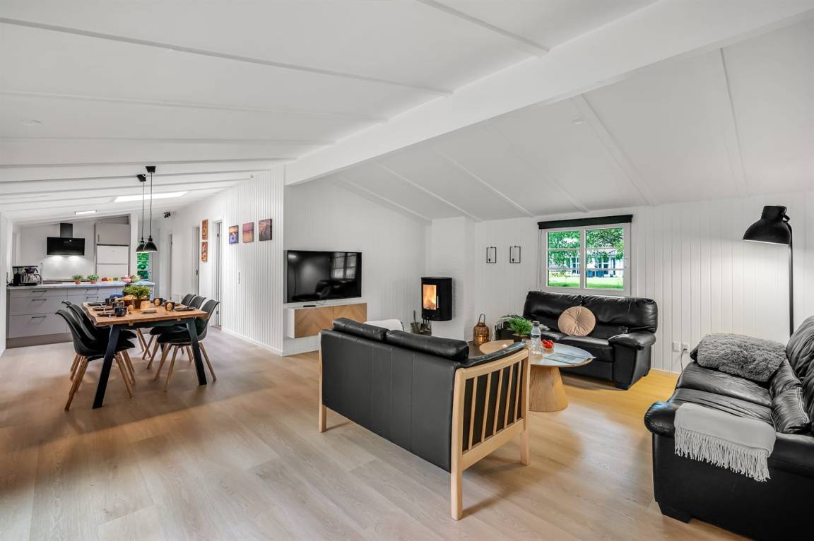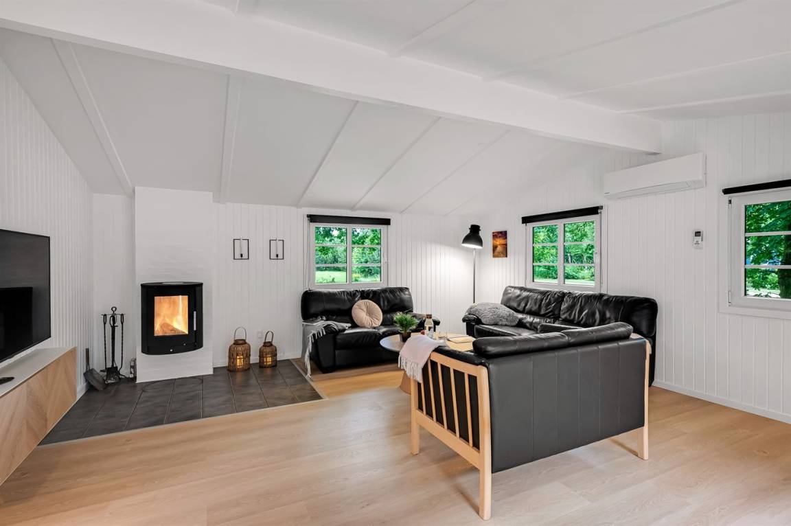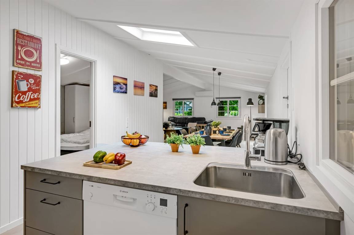 Das Haus ist gut eingerichtet mit einer hellen Küche, die mit allen modernen Annehmlichkeiten ausgestattet ist, die du für die Zubereitung leckerer Mahlzeiten benötigst. Die Küche ist offen mit dem gemütlichen Wohnzimmer verbunden, das geschmackvoll mit bequemen Möbeln und einem Kaminofen eingerichtet ist. Hier hast du außerdem die Möglichkeit, deine eigenen Streamingdienste zu nutzen.