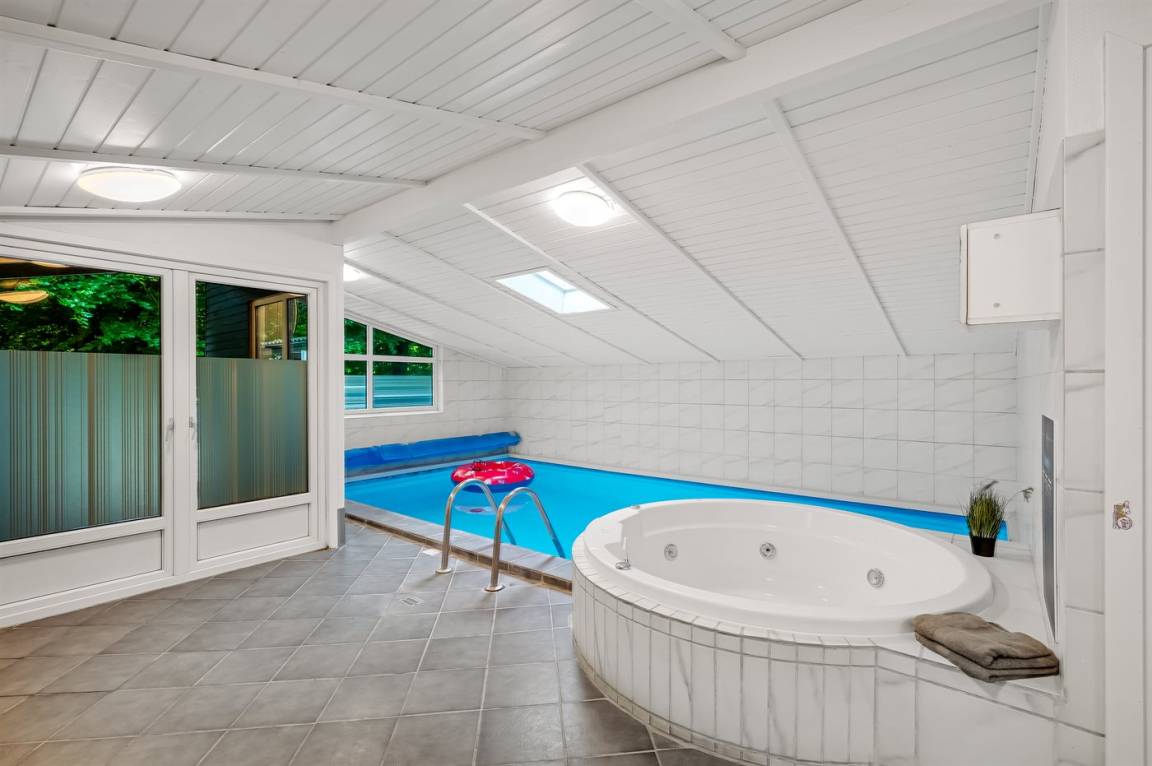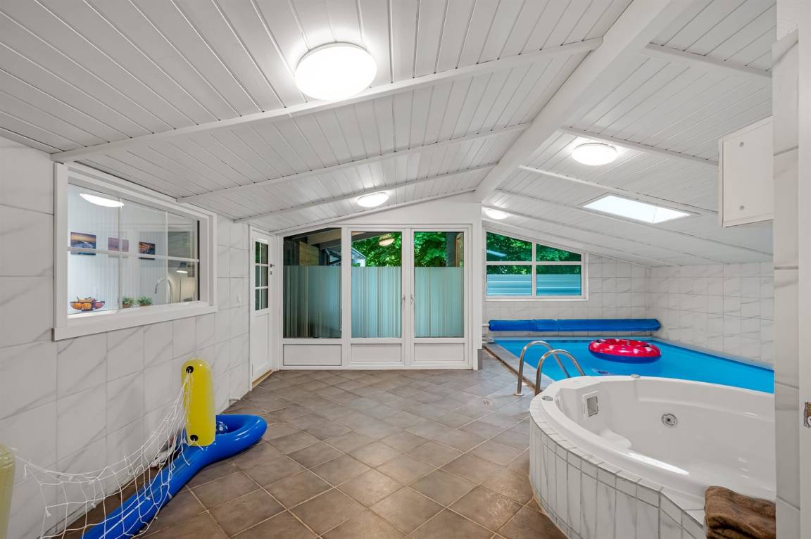 Auf einem großen Naturgrundstück findest du dieses Ferienhaus mit einem 21?m² großen Swimmingpool. Der Poolbereich lädt sowohl zum Spielen als auch zum Entspannen ein – hier kannst du eine erfrischende Runde schwimmen oder die Ruhe im schönen Whirlpool mit Standwasser und Platz für fünf Personen genießen.