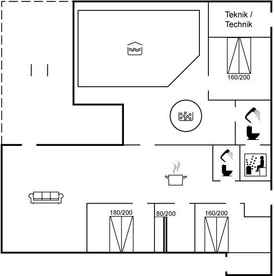 DraußenDie Ferienunterkunft liegt auf einem 1500 m² großen Naturgrundstück. Die Entfernung zum Meer beträgt 10000 m. Die nächste Einkaufsmöglichkeit liegt 450 m entfernt. Es steht ein offenes Terrassenareal zur Verfügung. Trampolin. Die Entfernung zu einem Spielplatz beträgt 450 m. Es steht ein Grill zur Verfügung. Parkplatz auf dem Grundstück.