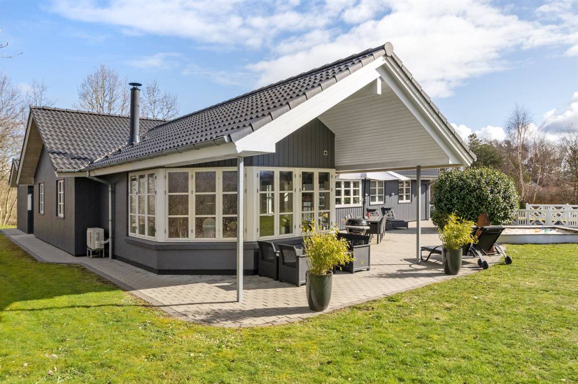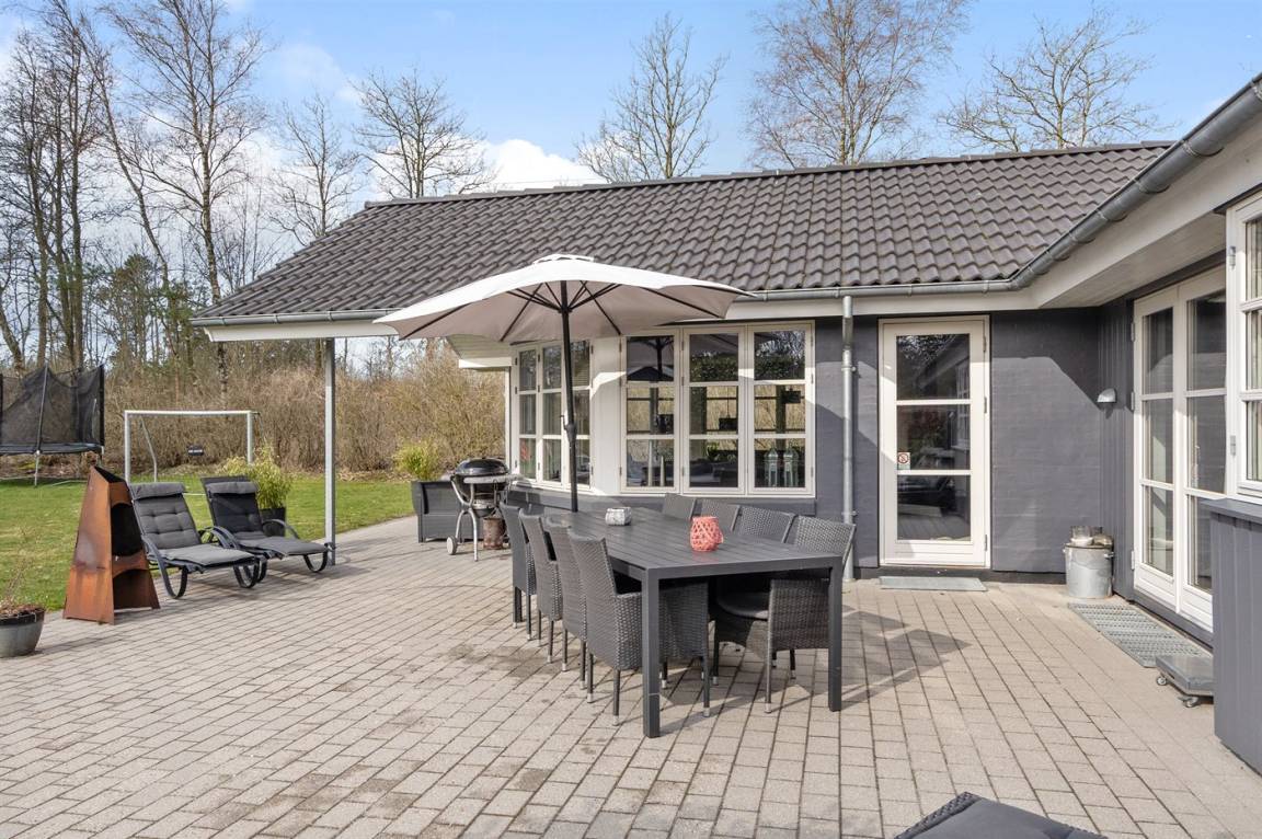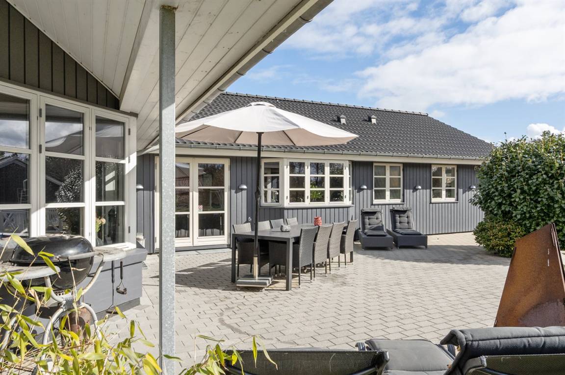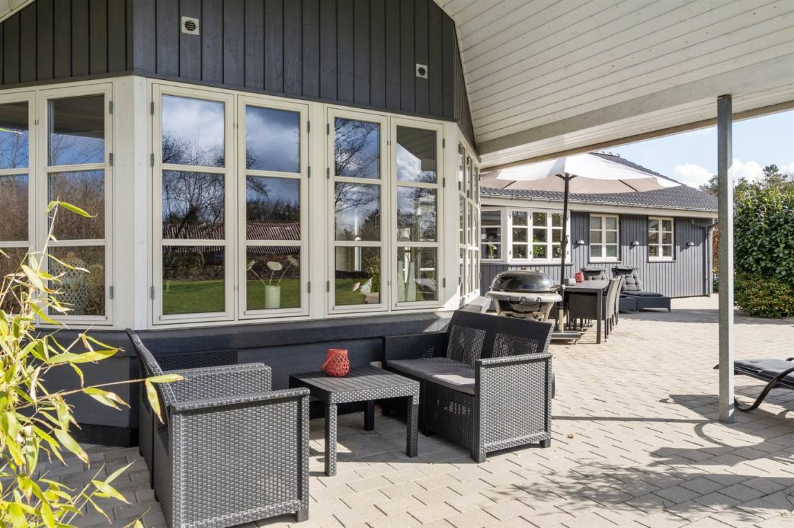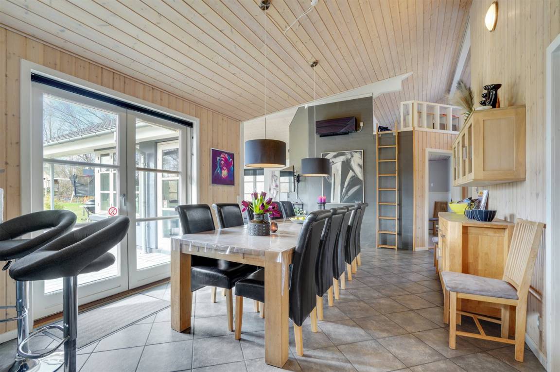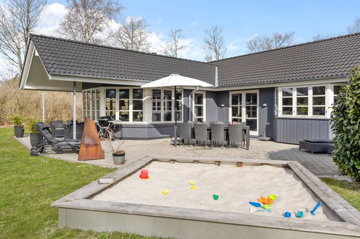 DraußenDie Ferienunterkunft liegt auf einem 1986 m² großen Gartengrundstück. Die Entfernung zum Meer beträgt 11000 m. Die nächste Einkaufsmöglichkeit liegt 500 m entfernt. Es steht ein offenes Terrassenareal zur Verfügung. Außerdem gibt es überdachte Terrasse. Schaukel. Sandkasten. Kinderspielhaus. Spielturm. Rutsche. Fußballtor. Die Entfernung zu einem Spielplatz beträgt 500 m. Es steht ein Grill zur Verfügung.Es steht eine Garage zur Verfügung. Parkplatz auf dem Grundstück.