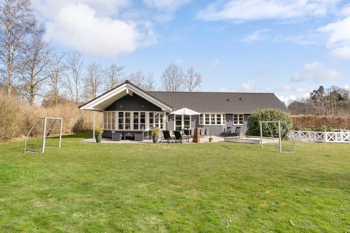 Auf einem großen, gut angelegten Gartengrundstück, mit einer guten Auswahl an Spielgeräten, findest du dieses schöne Ferienhaus – am Ende einer Stichstraße.