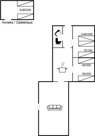 SchlafverhältnisseDie Schlafplätze verteilen sich auf 2 Schlafräume. 2 Schlafplätze in einem Doppelbett. 5 Schlafplätze in Einzelbetten. 2 von diesen Schlafplätzen befinden sich im Gästehaus.