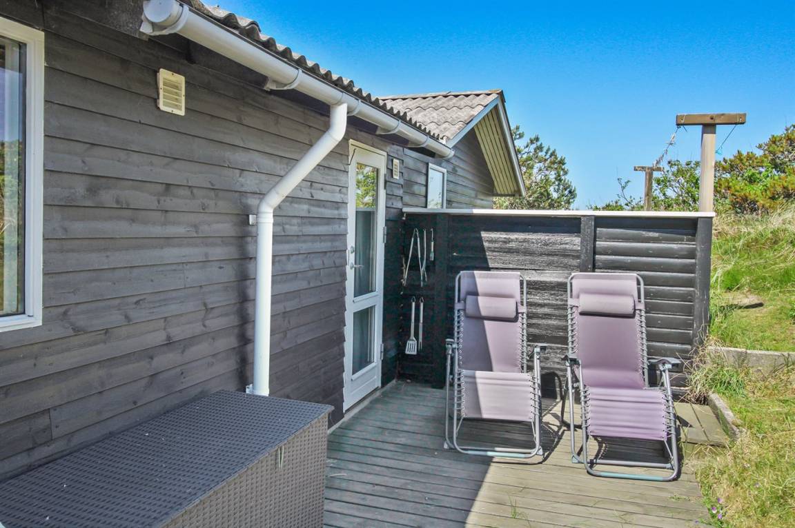 DraußenDie Ferienunterkunft liegt auf einem 1675 m² großen Naturgrundstück. Die Entfernung zum Meer beträgt 400 m. Die nächste Einkaufsmöglichkeit liegt 3500 m entfernt. Es steht ein 20 m² Terrassenareal zur Verfügung. Geräteraum. Schaukel. Sandkasten. Es steht ein Grill zur Verfügung. Parkplatz auf dem Grundstück.