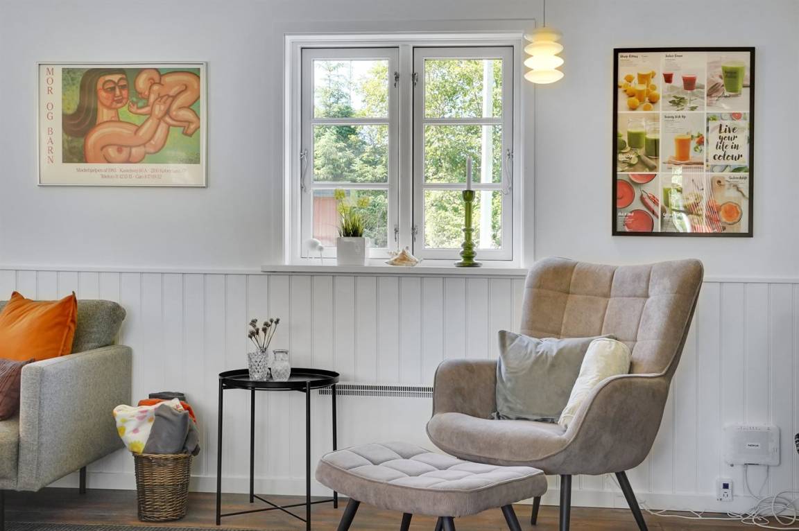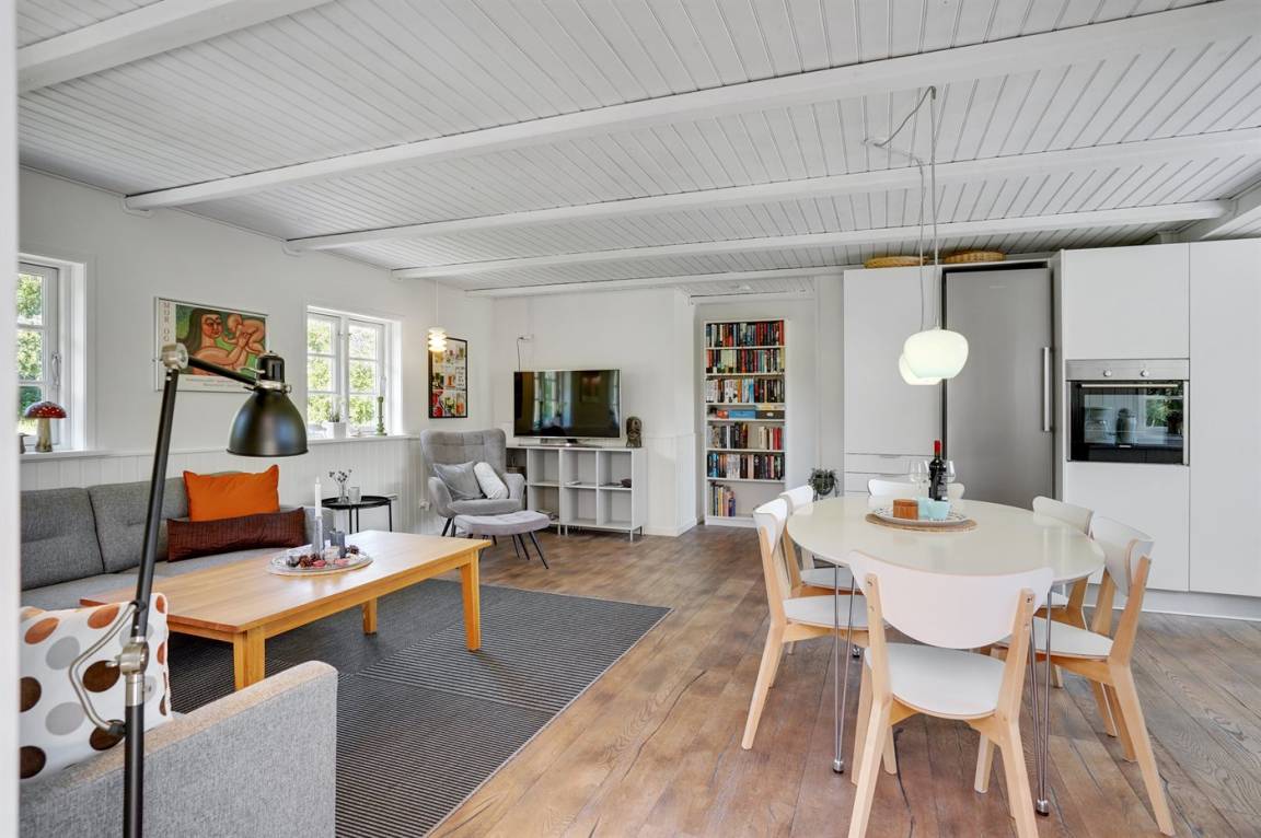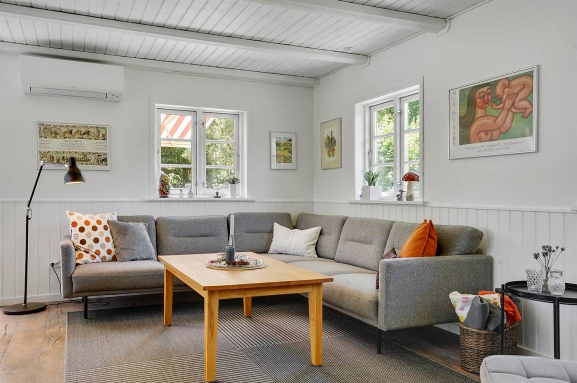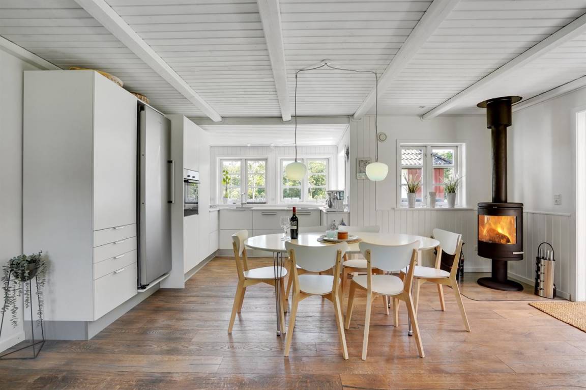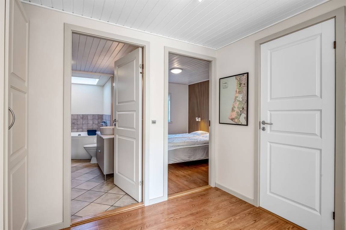In diesem schönen Ferienhaus können Sie so richtig abschalten und die Natur genießen. Das Haus liegt auf einem ungestörten Grundstück am Ende der Straße und hat einen Garten, der an ein Naturgebiet angrenzt. Am Haus gibt es auch einen Aktivitätsraum, der unter anderem mit einem wendbaren Air-Hockey-Tisch und Fitnessgeräten ausgestattet ist. Das Herzstück des Hauses ist das hübsche Wohnzimmer, wo Sie Platz und Ruhe finden, um auf dem großen Sofa Ihren Gedanken nachzuhängen, mit der ganzen Familie am Kamin zu sitzen oder einen guten Film anzusehen. Auch Bücher und Spiele stehen zur Verfügung, die Sie während Ihres Urlaubs gern nutzen können.