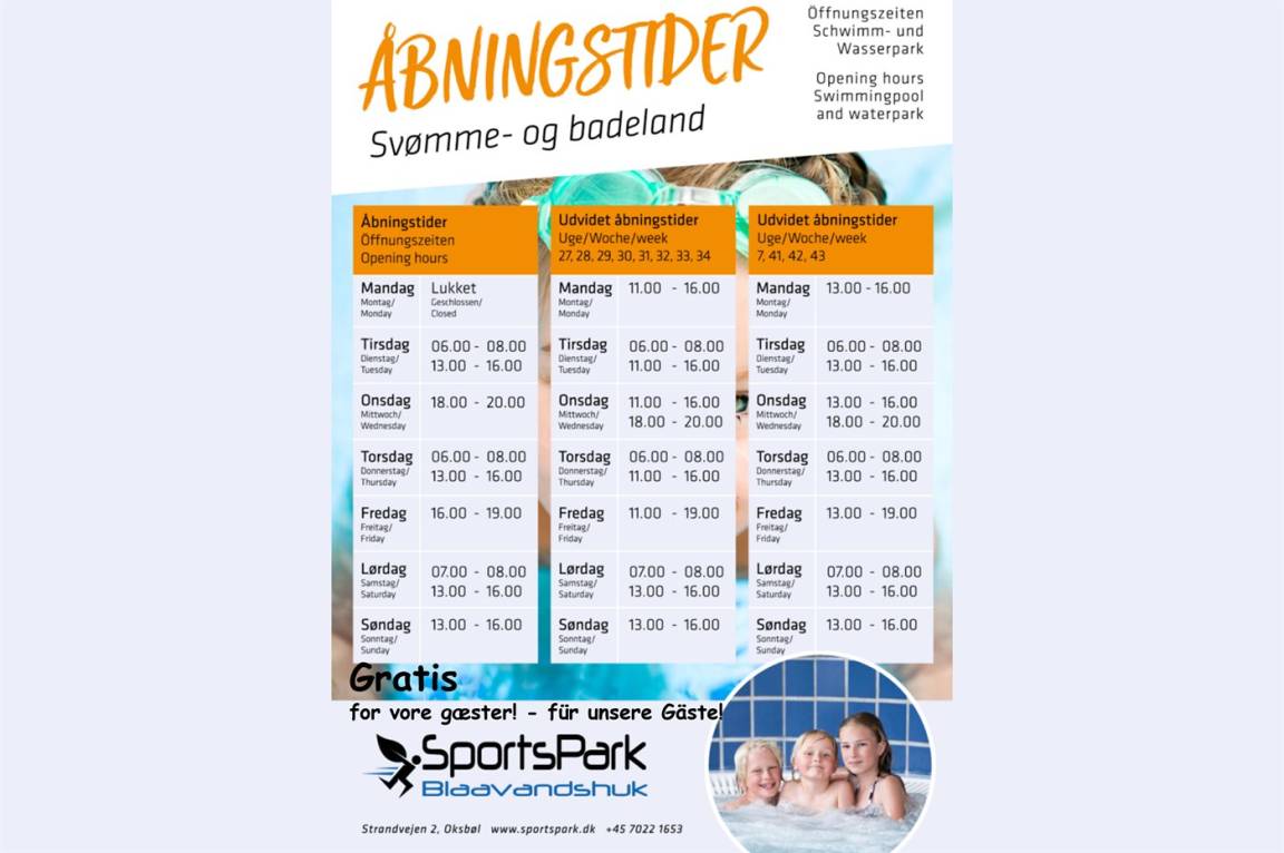 Es gibt freien Eintritt zum Erlebnisbad im "Sportspark Blåvandshuk" in Oksbøl.