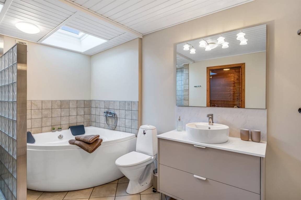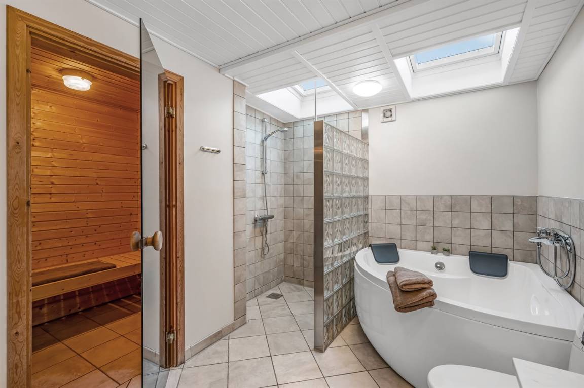 WC und BadEs gibt 2 Badezimmer mit Duschnische und 2 Toiletten. Fußbodenheizung in 2 Badezimmern.. Badewanne. Es steht eine Sauna zur Verfügung in der Sie sich so richtig entspannen können.