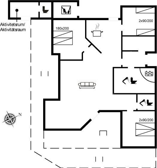MultimedienIn der Ferienunterkunft gibt es 2 Fernseher. DVD-Player. Stereoanlage. CD-Player. Mindestens 4 dänische Fernsehsender. Mindestens 4 deutsche Fernsehsender. Es steht kabellose Internetverbindung zur Verfügung.