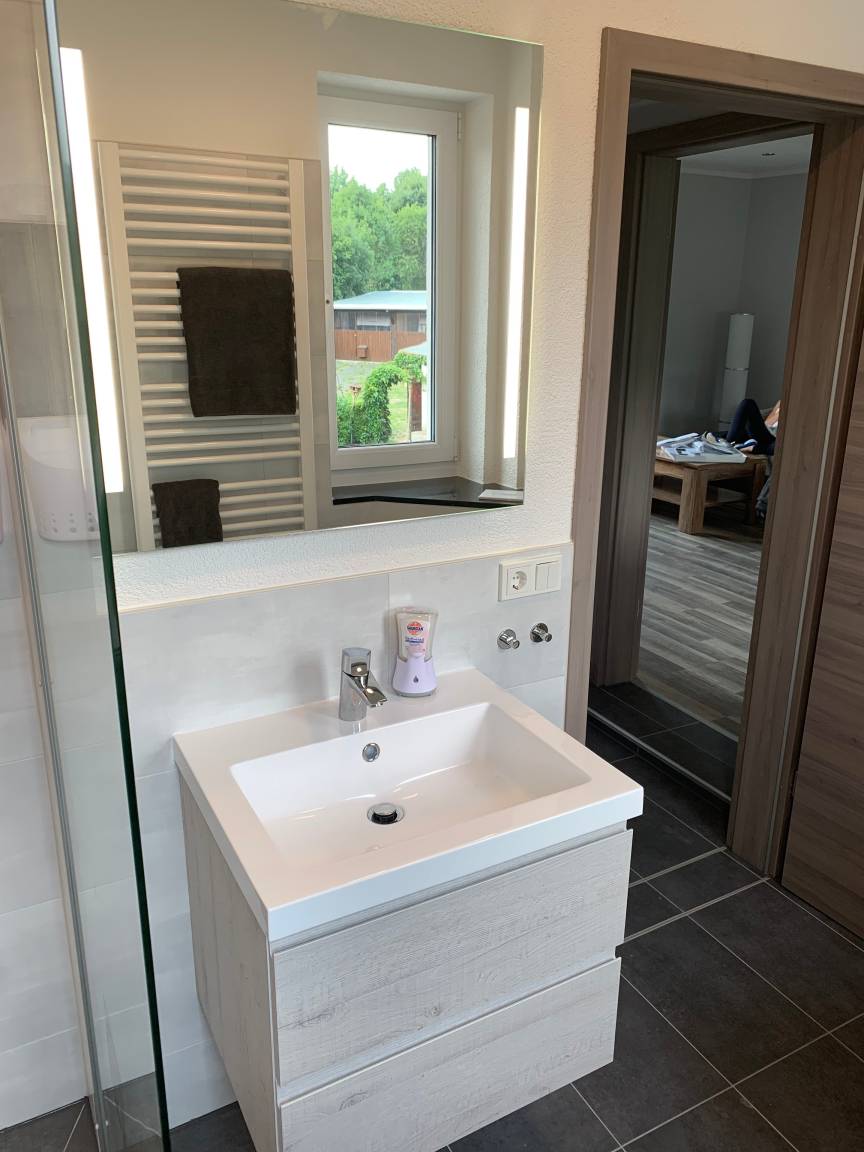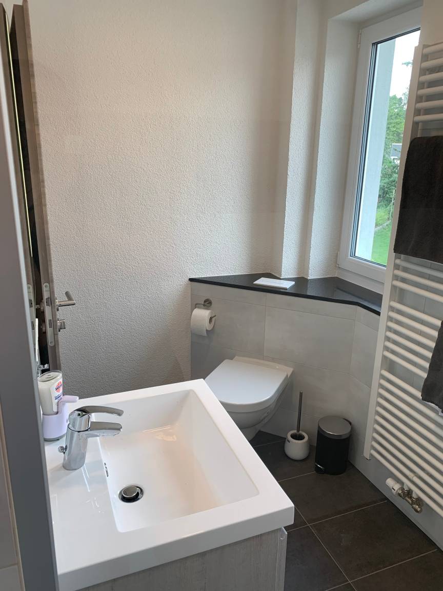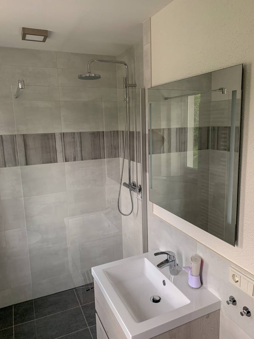 Badezimmer: Das helle Badezimmer verfügt über eine Regendusche und eine Toilette. Hier finden Sie natürlich auch einen Haartrockner vor.