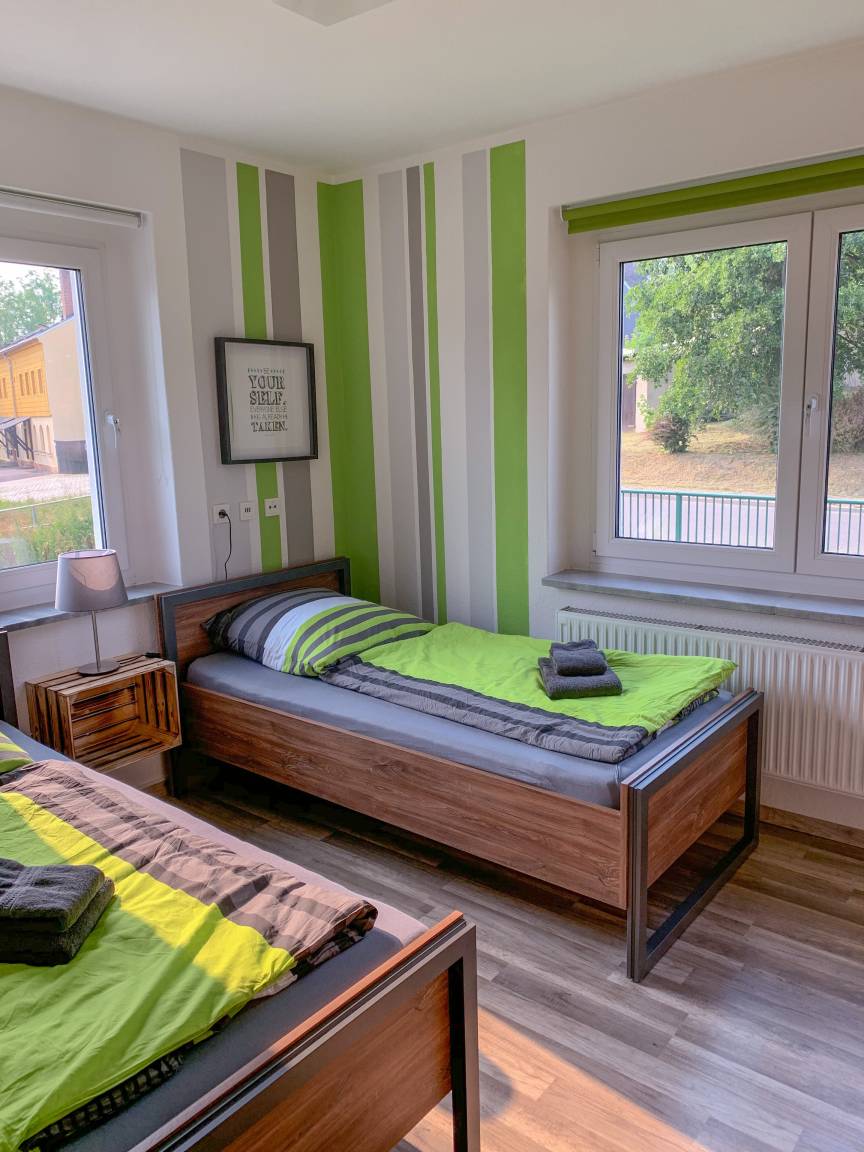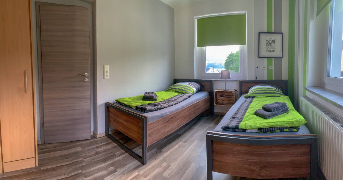Schlafzimmer 2: Das zweite Schlafzimmer ist mit zwei getrennten Betten ausgestattet, die für gemütliche Nächte sorgen.