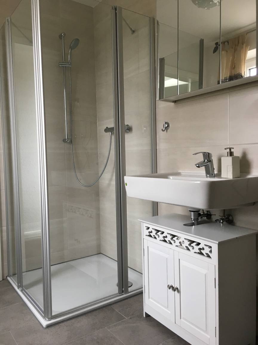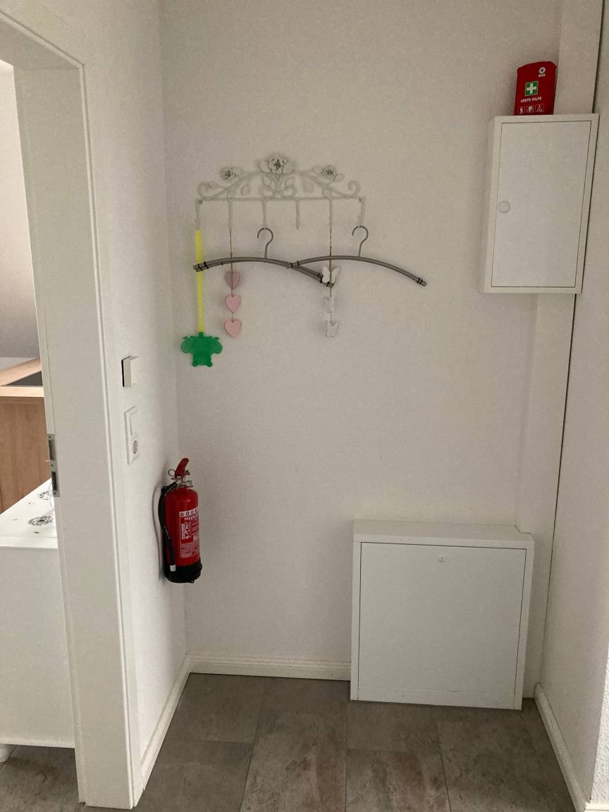 Die Ferienwohnung im OG hat top geschnittene 60 m², Wohnzimmer mit offener Küche, 2 Schlafzimmer, Bad mit Dusche, Fußbodenheizung.